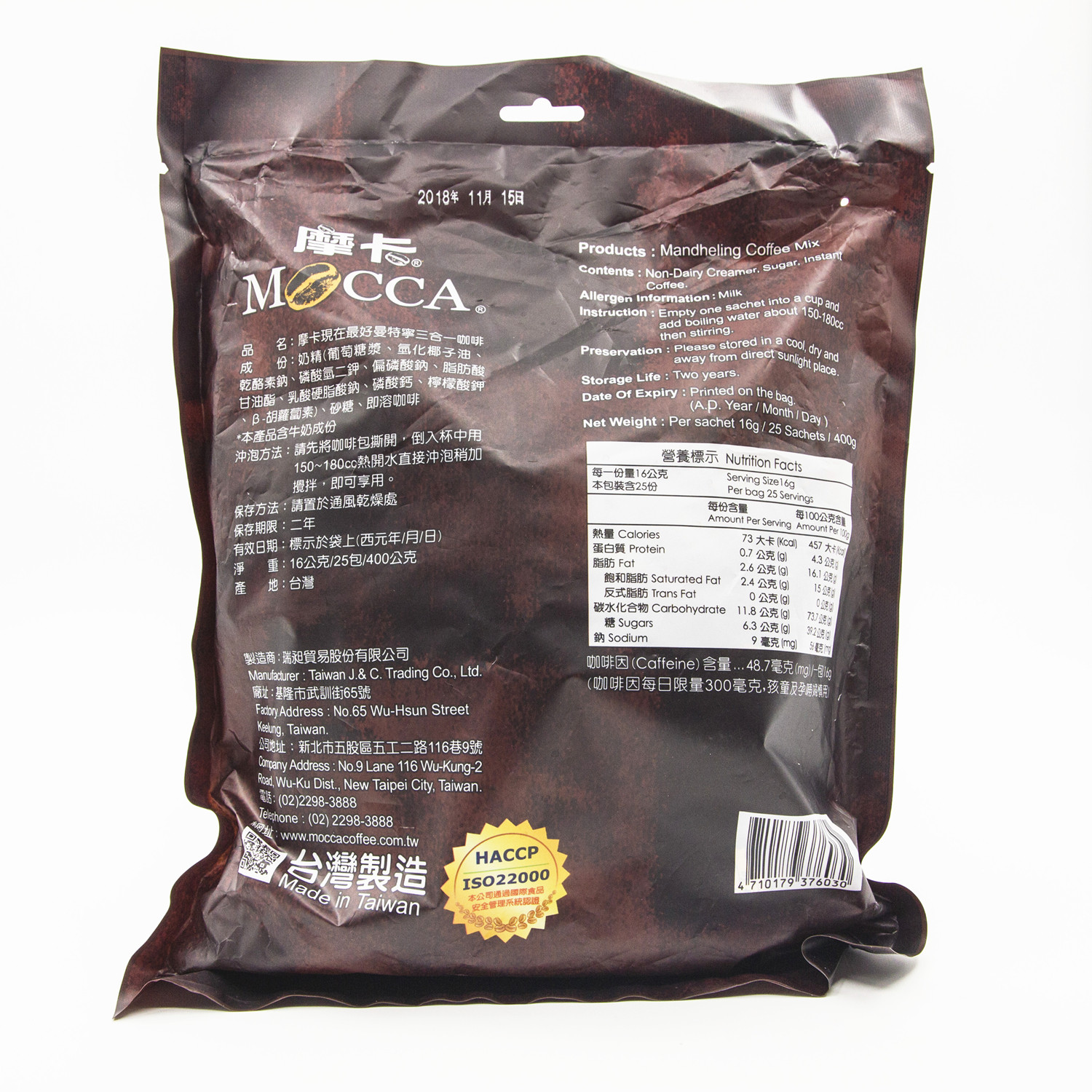 (Специальность мантинсинга) Тайвань Кванлианский супермаркет приобретает кофейный уголь Мокко.