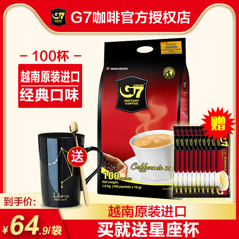 Новые товары Вьетнам Оригинальный импортный кофе G7 Оригинал Три -на -одно -скоростные растворимые кофейные порошок 100 1600 г суки
