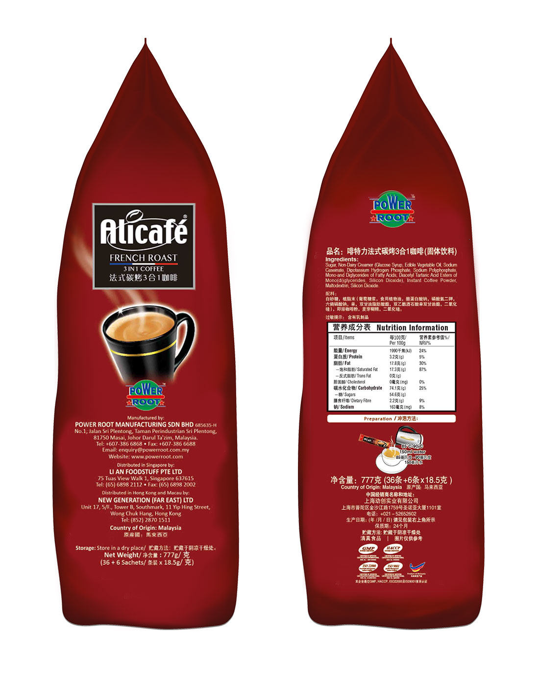 Оригинальный импортный Bron Special Bron Special Carbon Carboned Cofite 3 -1 -1 быстрорастворимый кофейный порошок 777 грамм 42 штуки