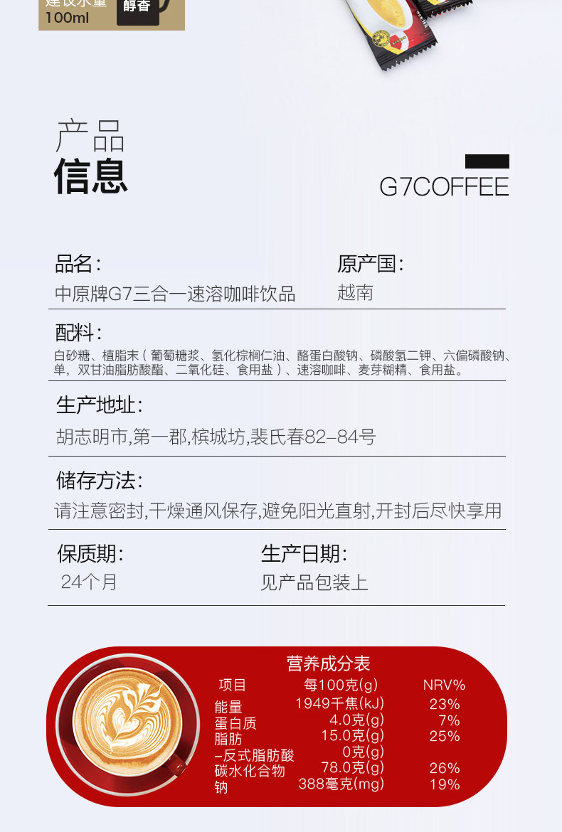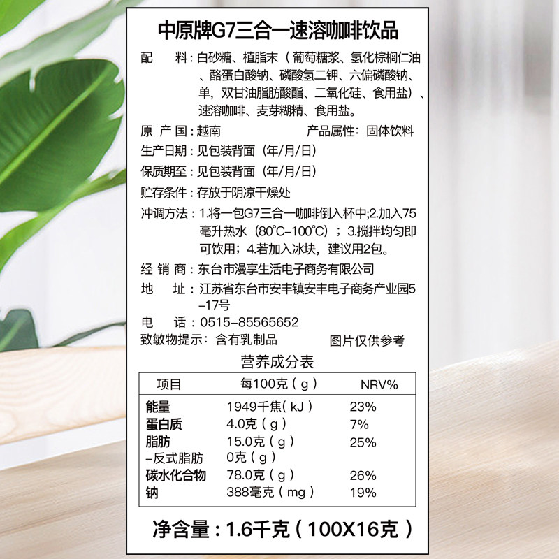 Подлинный Вьетнам импортированные центральные равнины G7 Кофе Оригинал Три -на одну скорость кофейного порошка 1600 г питьевого освежения