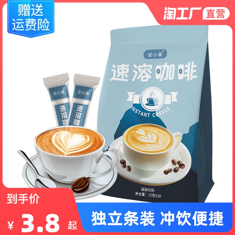 Быстрый -растворимый кофейный мешок 450 г оригинального кофе мгновенный черный кофейный студент освежает кофейный порошок 30 кусочков
