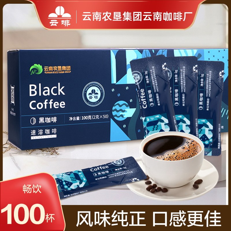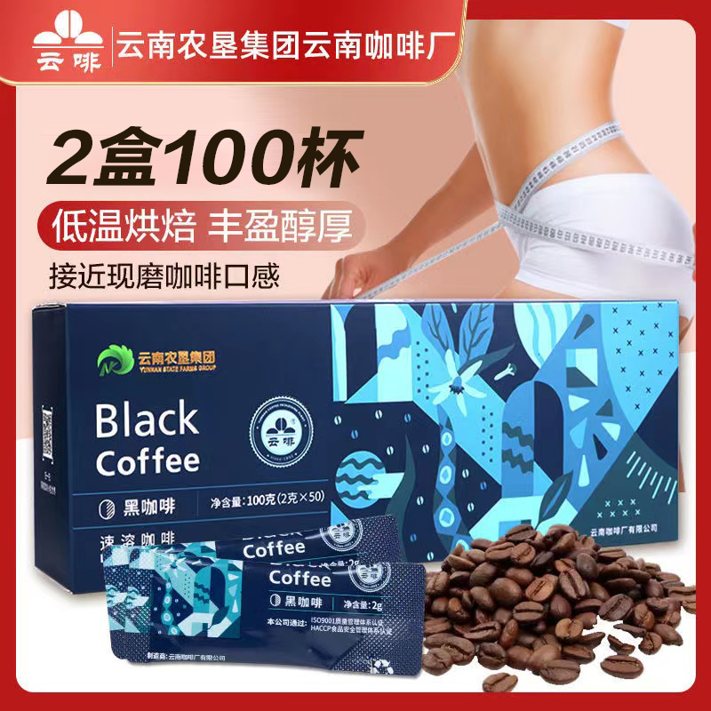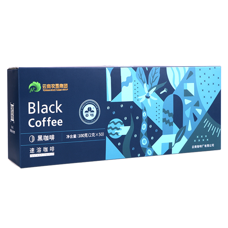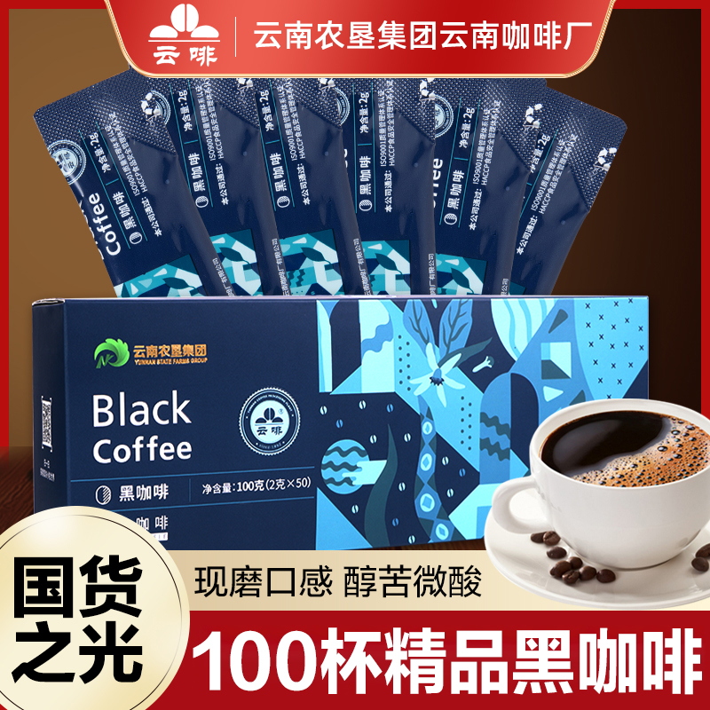 Yunye American -стиль чистый черный кофейный порошок скорость скоростной растворимости Аутентичный подлинный юньнань маленький голубой горный ухо Ухо 2 коробок из 2 г*100 чашек