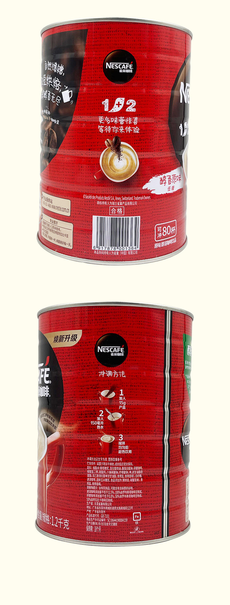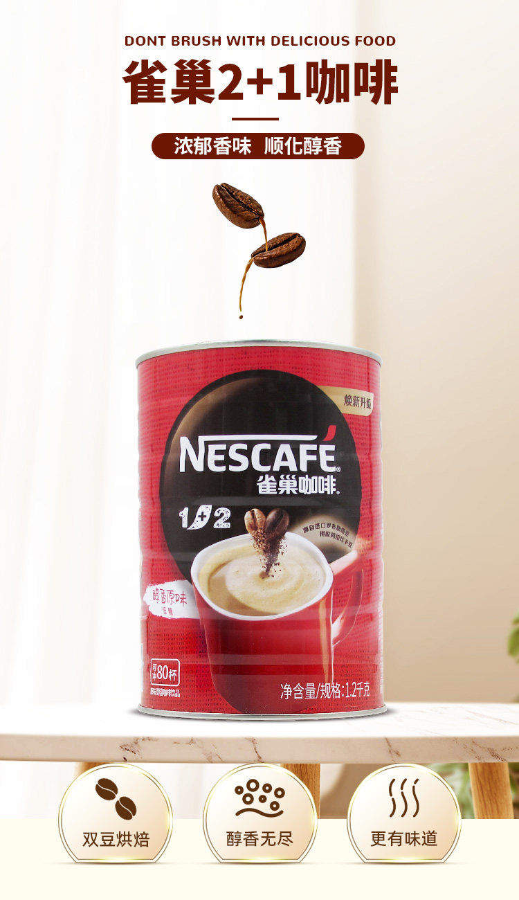Nestlé Original Coffee 1+2 банки 1,2 кг три -в одном низком растворительном растворимом ковше.