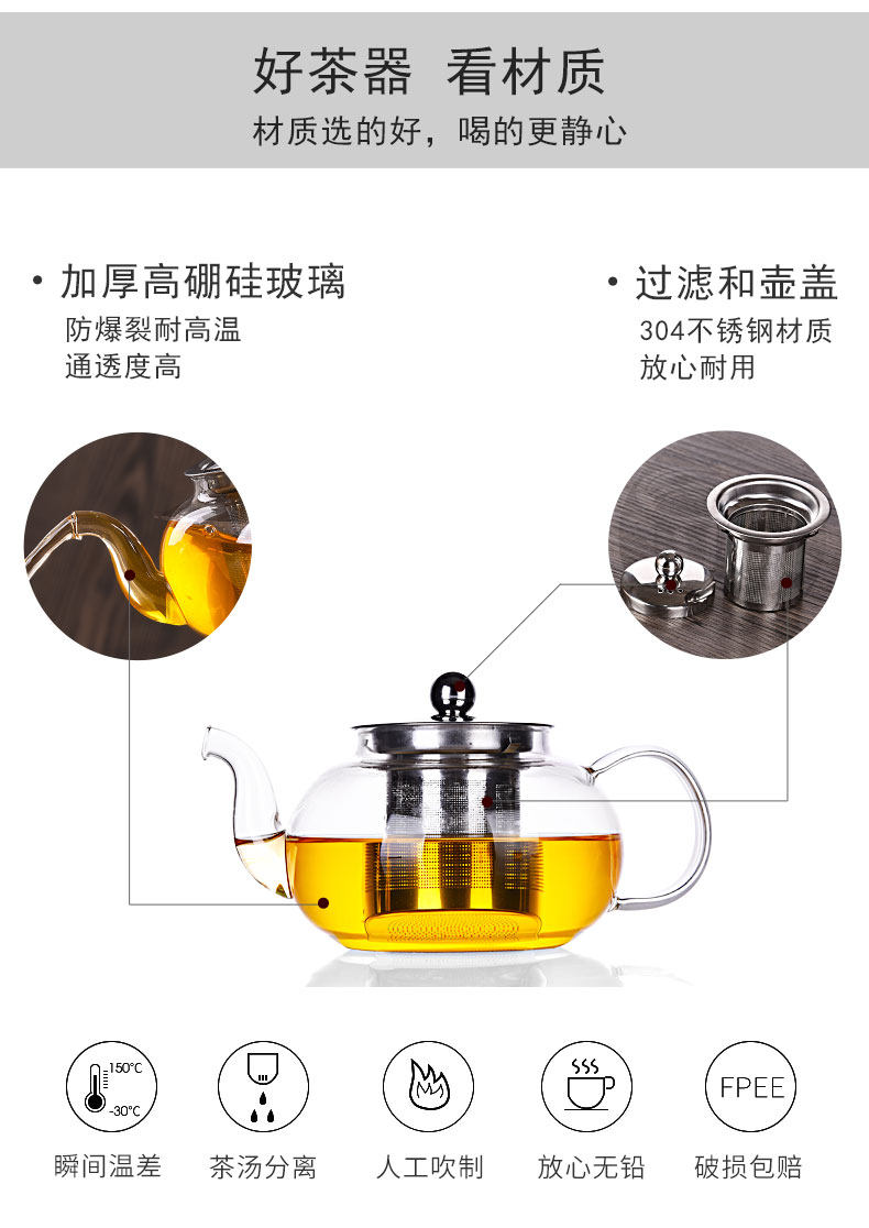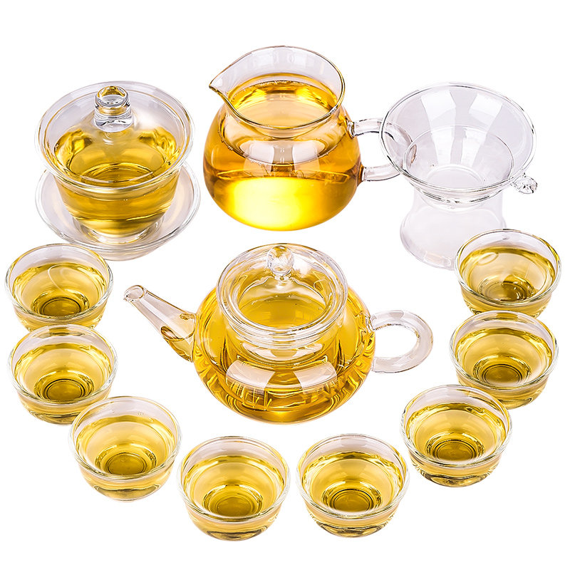 Стеклянный чайный сервиз, японский комплект, чай, заварочный чайник, чайная чашка с аксессуарами, увеличенная толщина, простой и элегантный дизайн