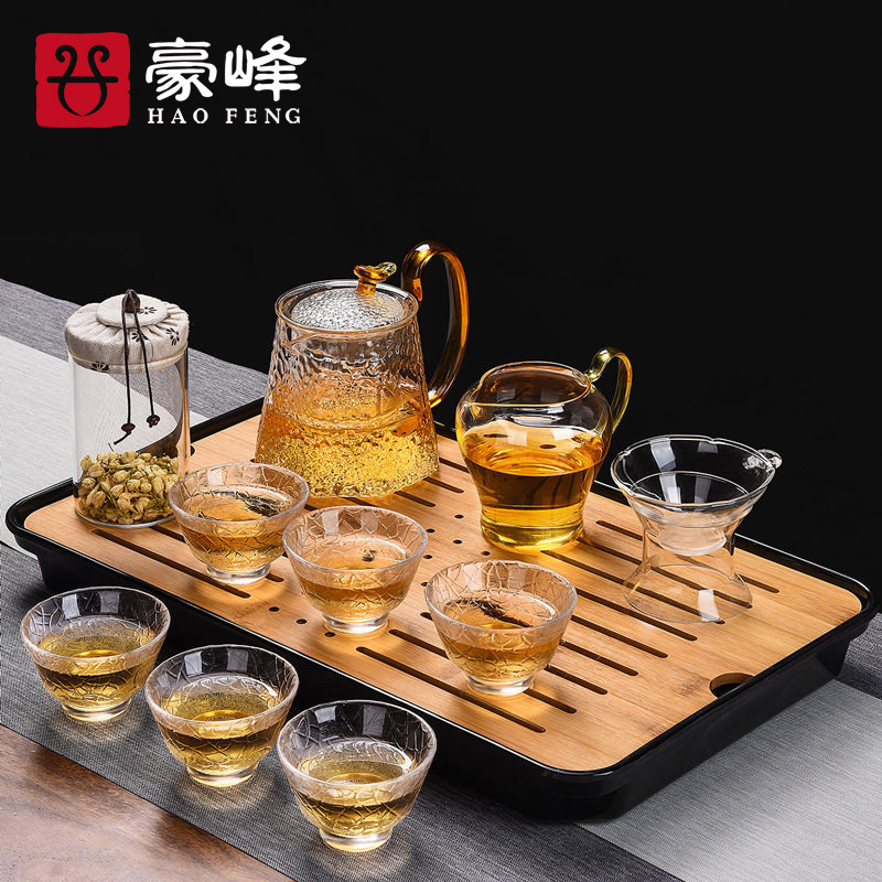 Стеклянный чайный сервиз, японский комплект, прозрачная чайная чашка для домашнего использования, красный (черный) чай, заварочный чайник