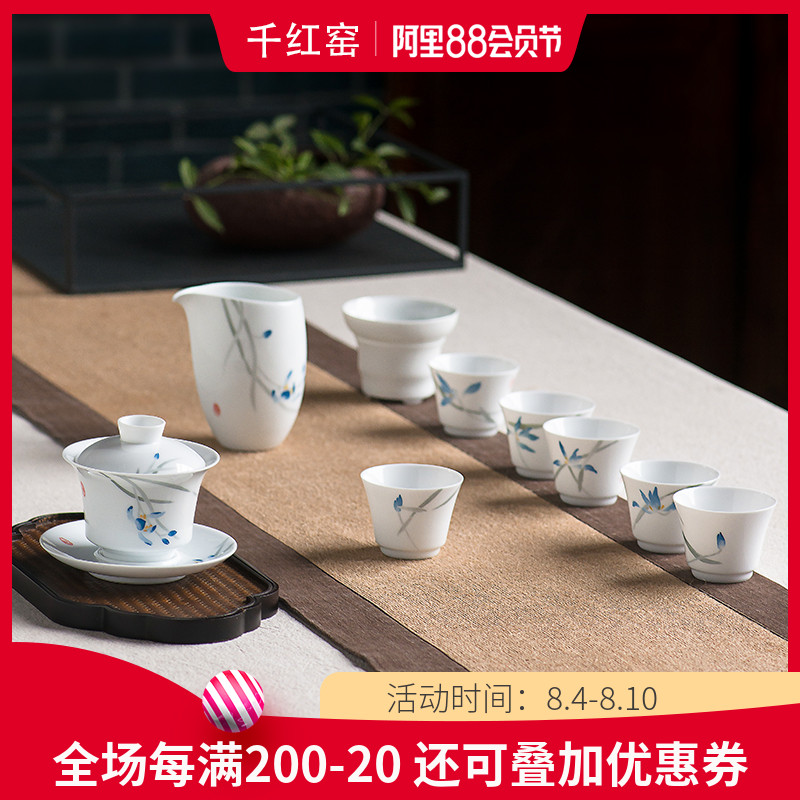 千红窑 Красочный чайный сервиз, керамический комплект для домашнего использования, чайная чашка, ручная роспись