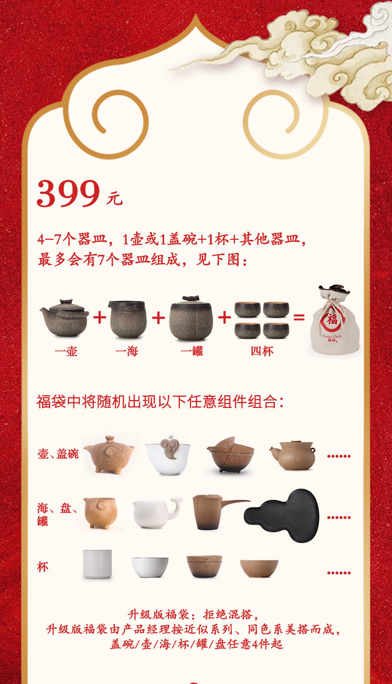 Wanlitang Limited Tea House Blessing Bug Bag Cemetery Ceramic Tea Set, к счастью, удача сдается
