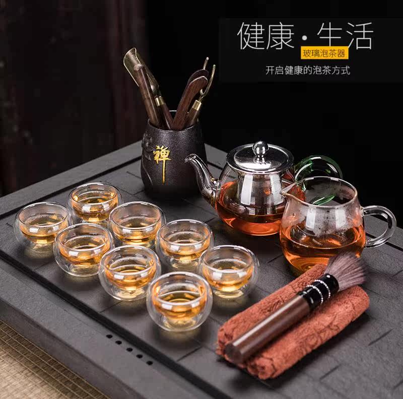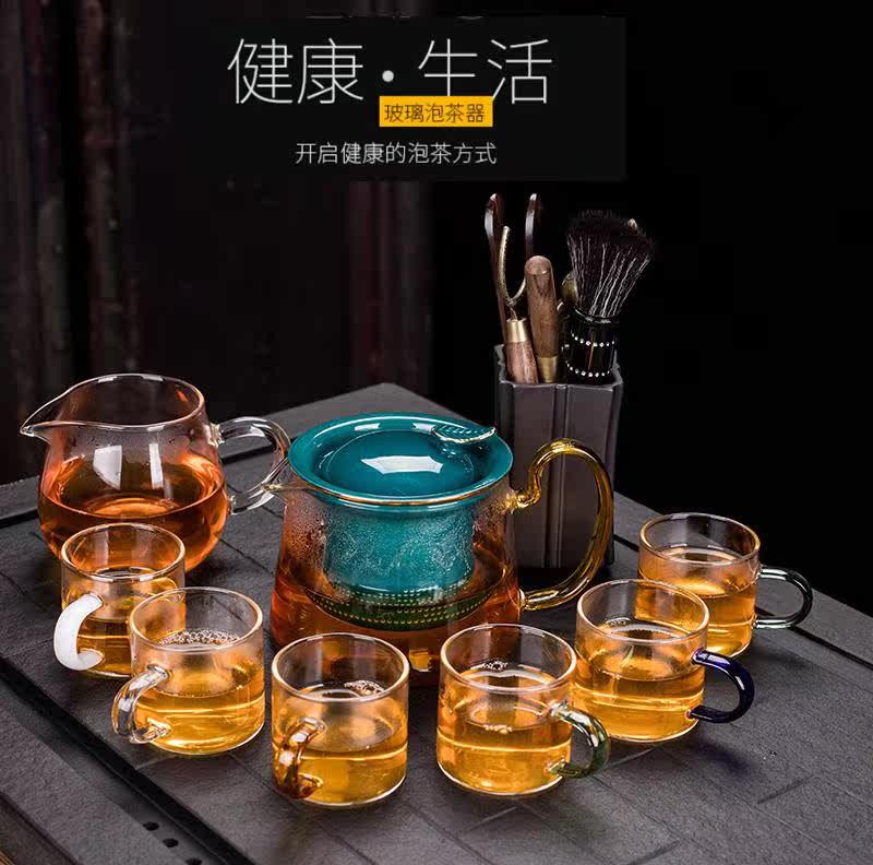 Стеклянный чайный сервиз, прозрачный комплект, красный (черный) чай для домашнего использования, заварочный чайник для офиса, чайная чашка, простой и элегантный дизайн