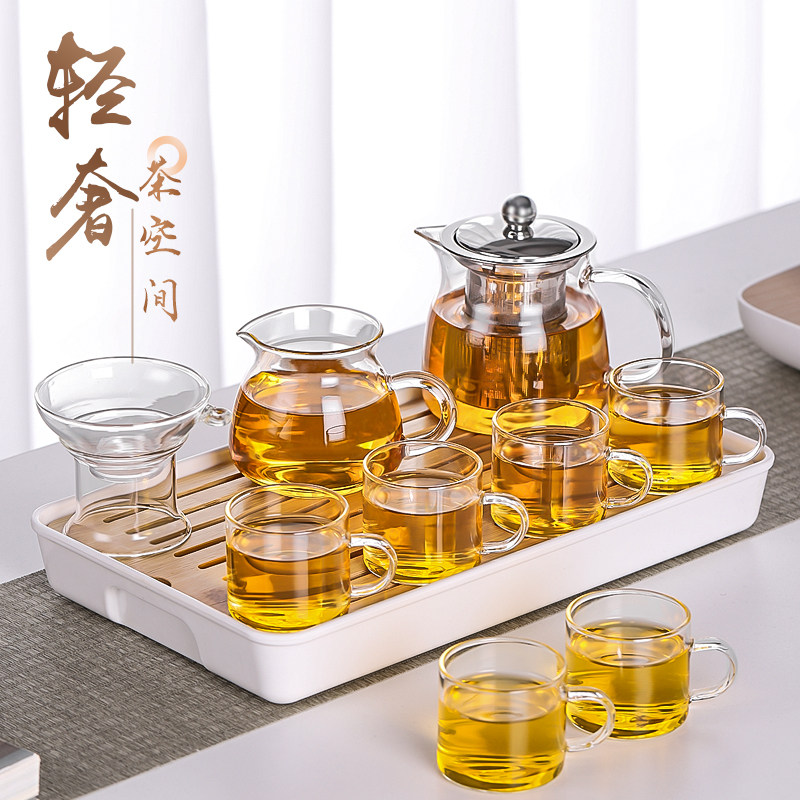 Стеклянный чайный сервиз, прозрачный комплект, чайная чашка, ароматизированный чай, заварочный чайник, фильтр, красный (черный) чай