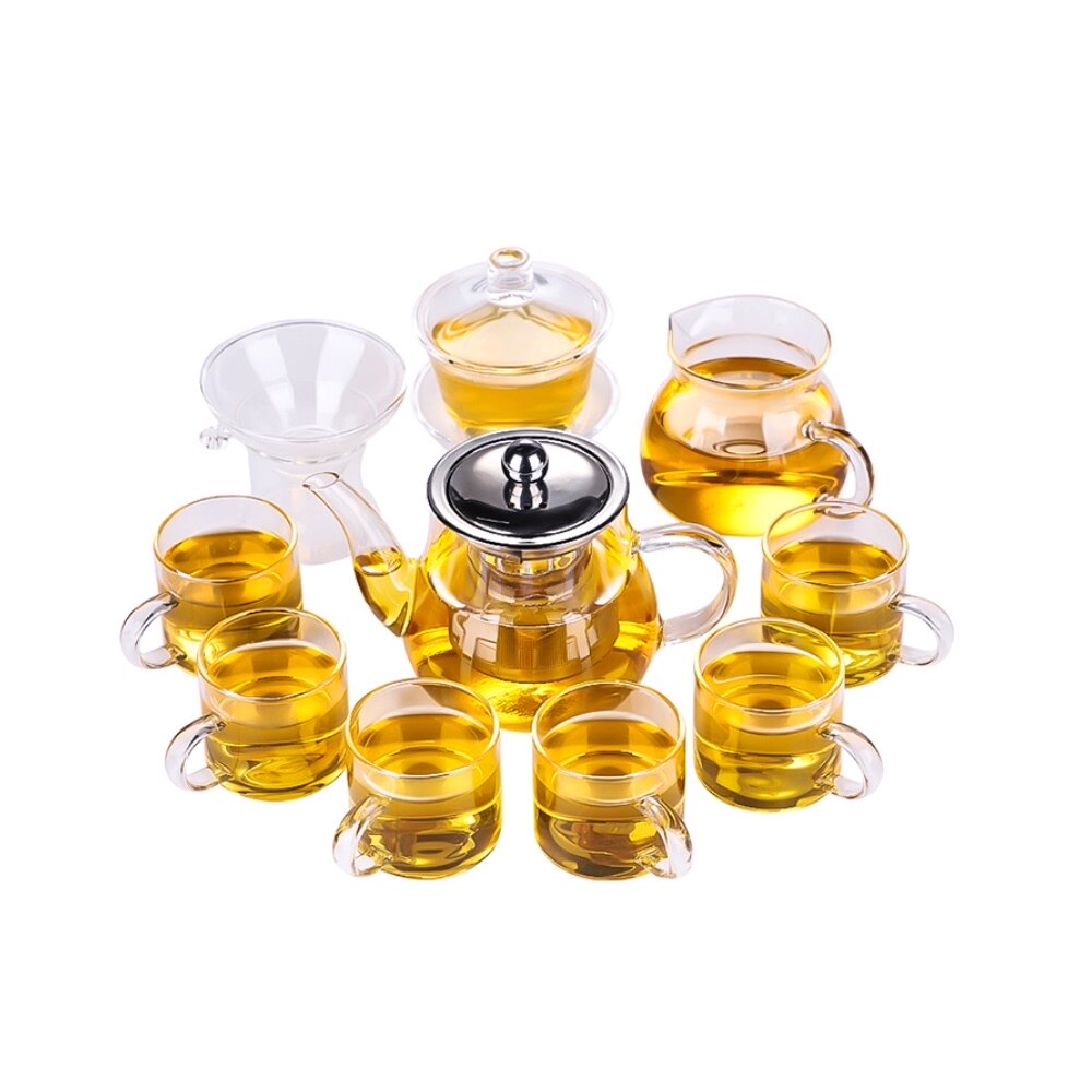 Стеклянный чайный сервиз, комплект, прозрачная чайная чашка для домашнего использования, заварочный чайник для гостиной для офиса, чай, простой и элегантный дизайн