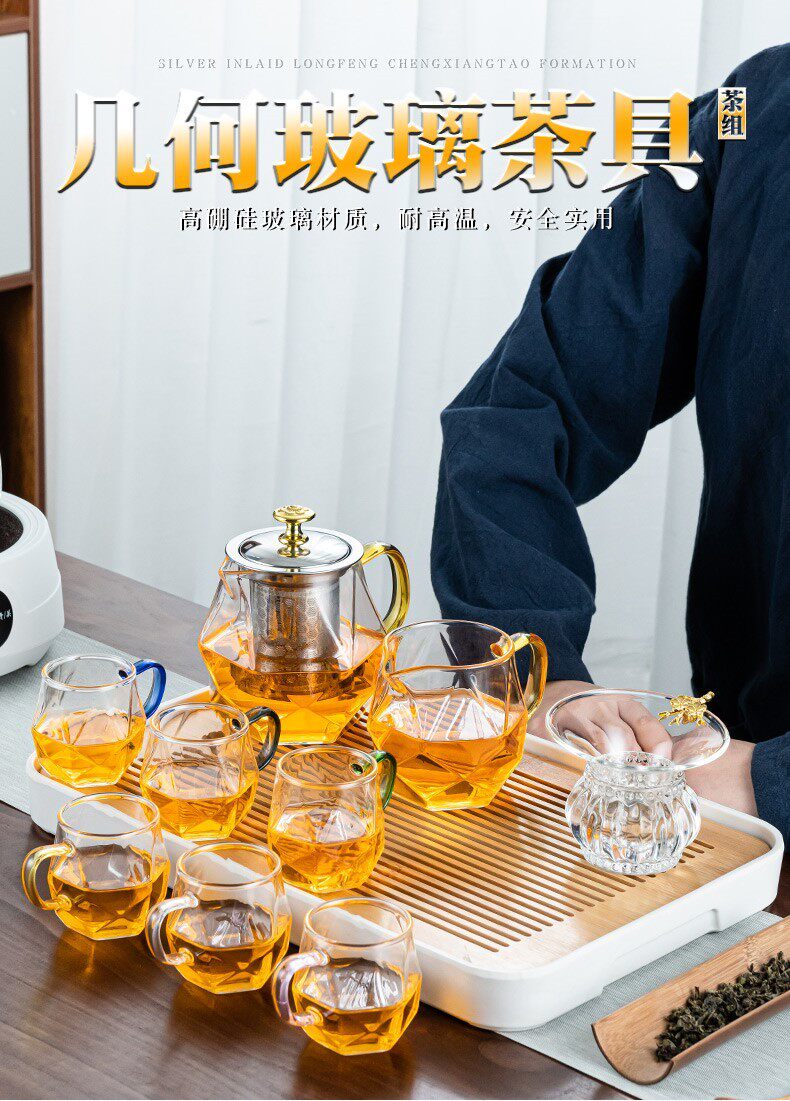 Стеклянный чайный сервиз, комплект для домашнего использования для гостиной, заварочный чайник, японская чайная чашка, элитный чай для офиса