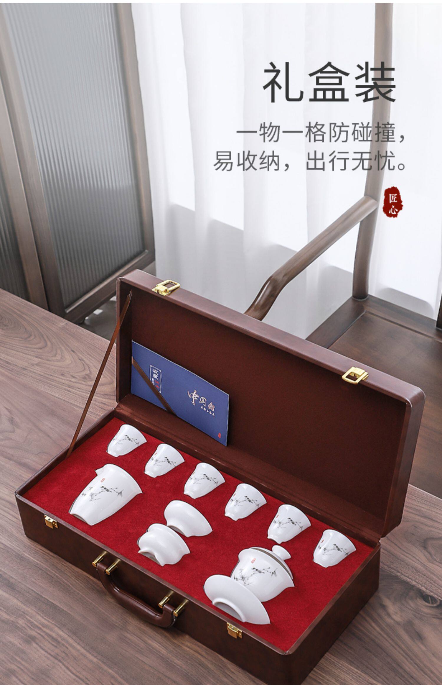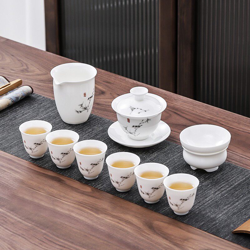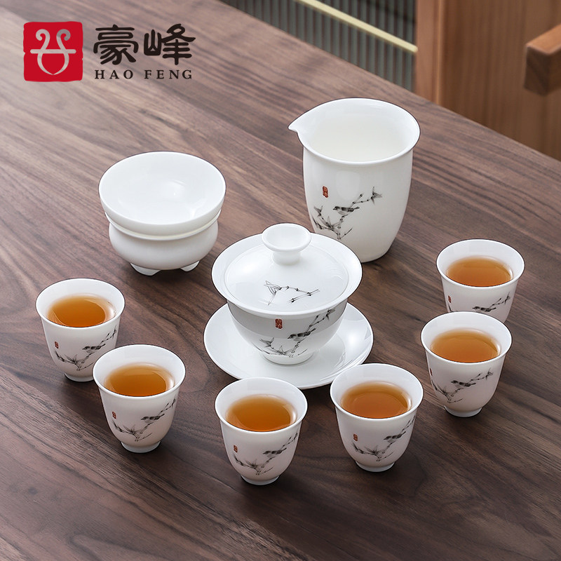 Haofeng Белый фарфоровый чай набор мебели для гостиной керамика Керамика чаша миска кунг -фу чай набор Полный офисный совет