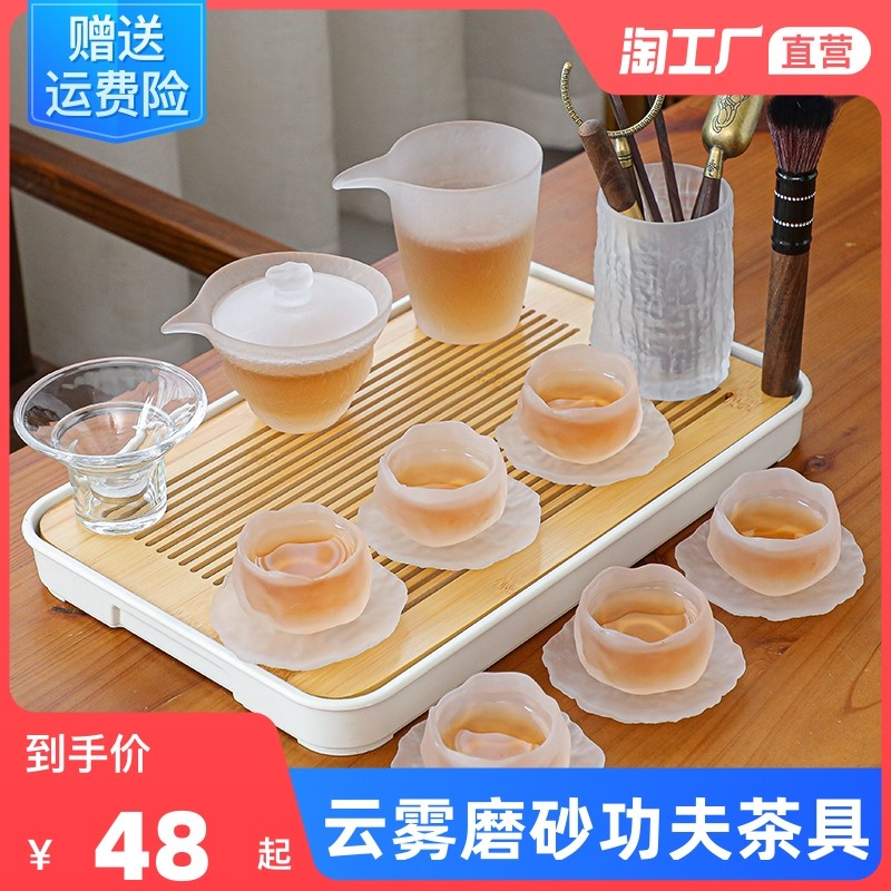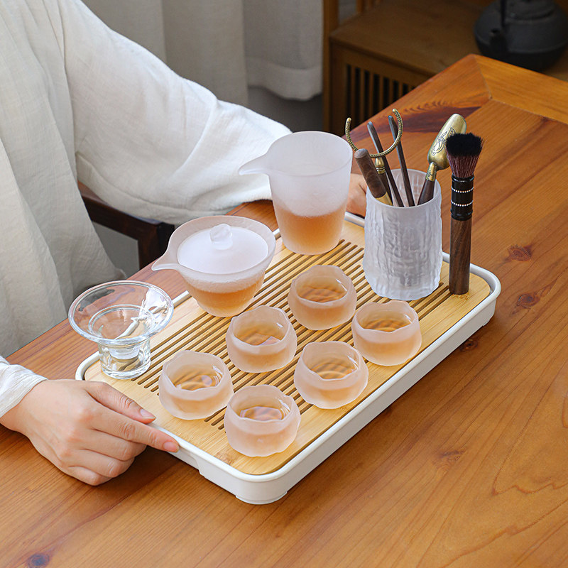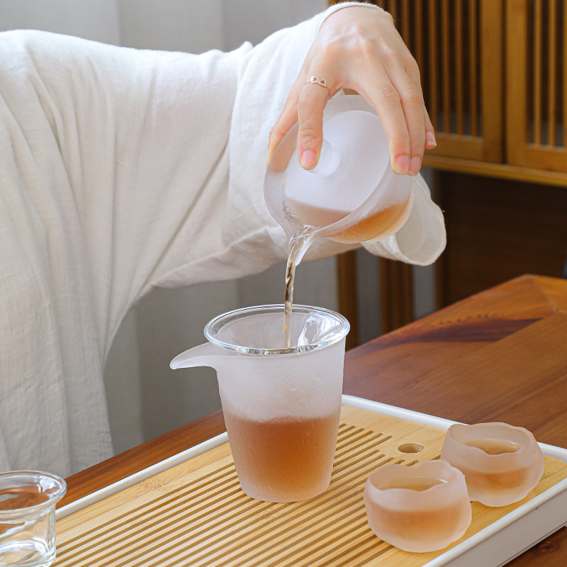 Стеклянный чайный сервиз, японский комплект, чайная чашка, современный чай для офиса, простой и элегантный дизайн