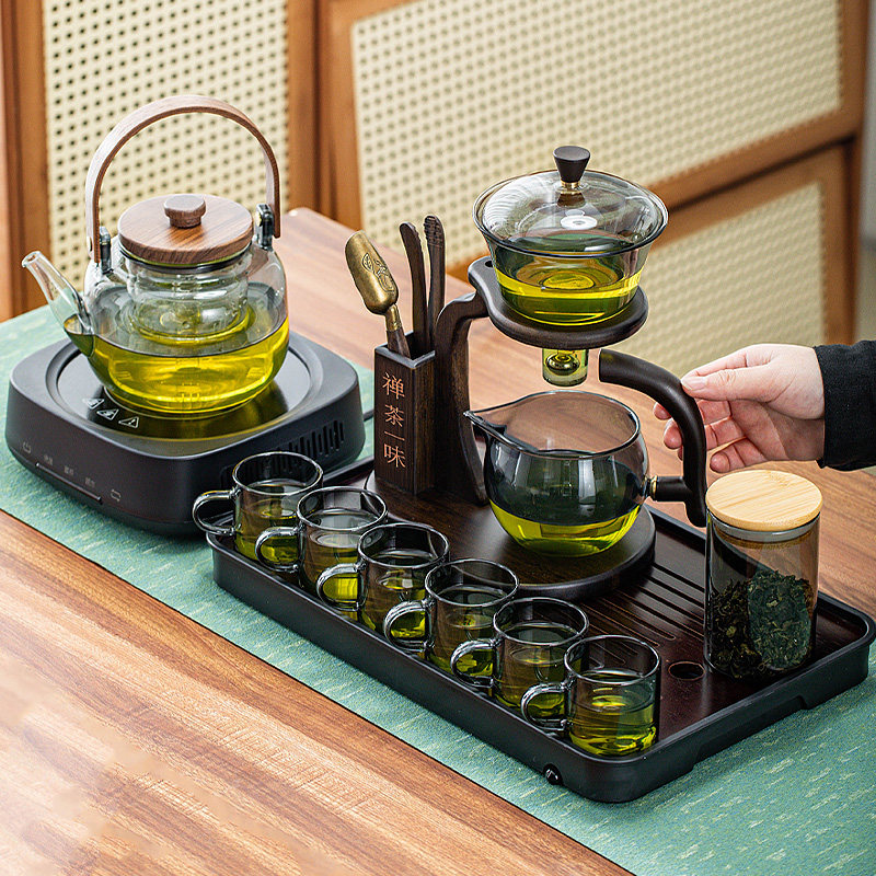 Автоматический чай, стеклянный чайный сервиз, комплект, заварочный чайник, высококлассная чайная чашка, легкий роскошный стиль
