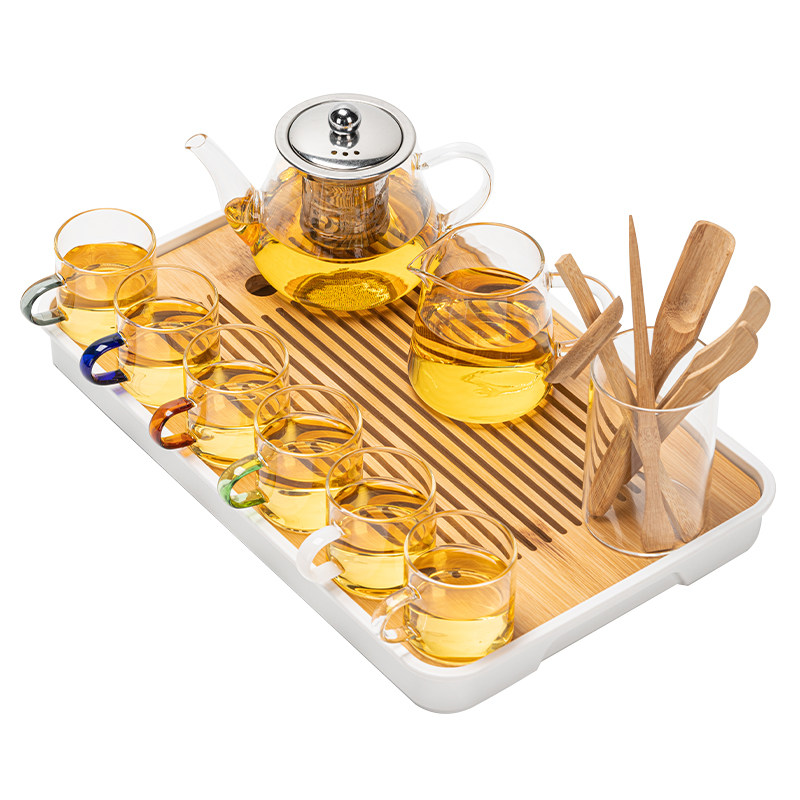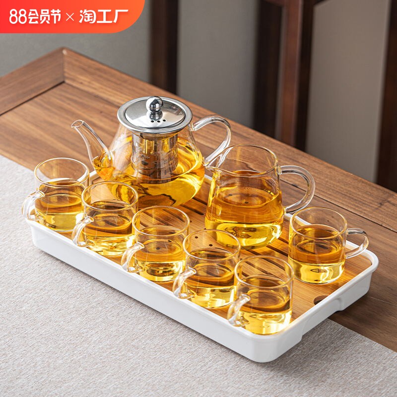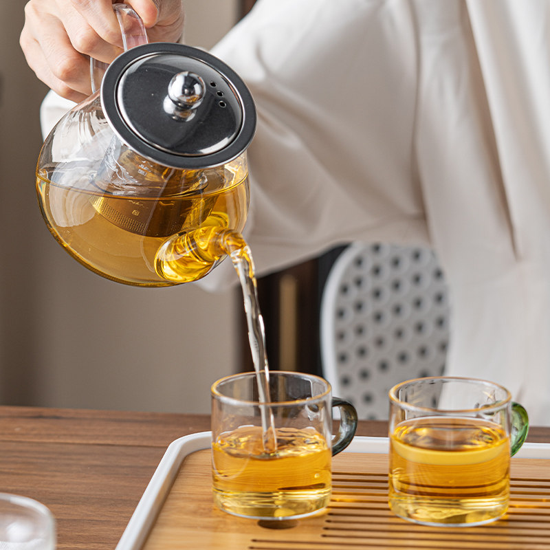 Стеклянный чайный сервиз, комплект для домашнего использования, прозрачная чайная чашка для гостиной, заварочный чайник для офиса, чай, простой и элегантный дизайн, защита от ожогов
