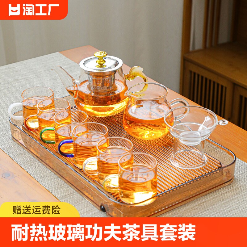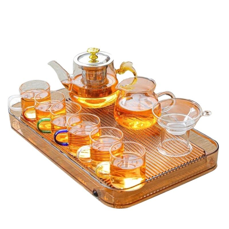 Стеклянный чайный сервиз, комплект, ароматизированный чай для домашнего использования, заварочный чайник, чайная чашка, легкий роскошный стиль