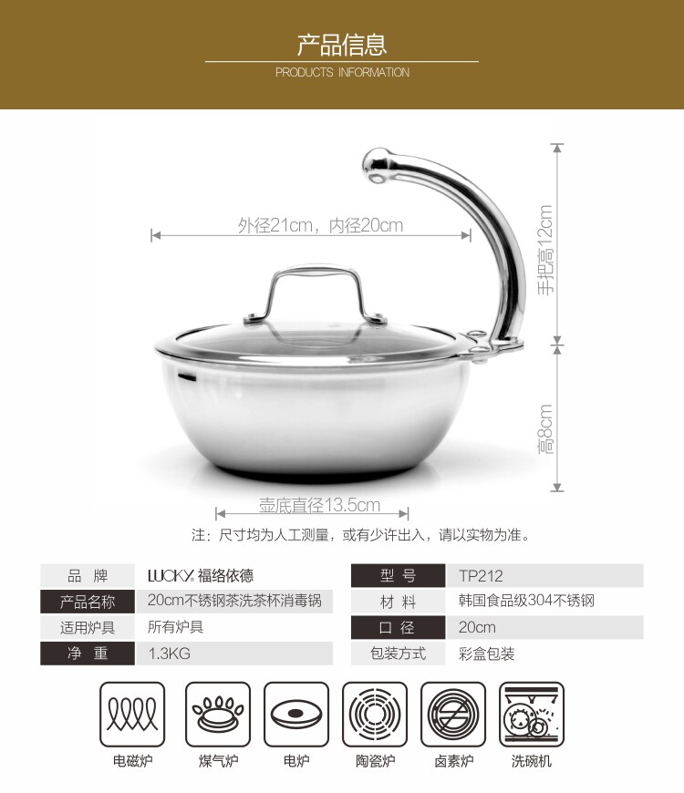福络依德 Антибактериальный электромагнитный чайный сервиз из нержавеющей стали, 20см