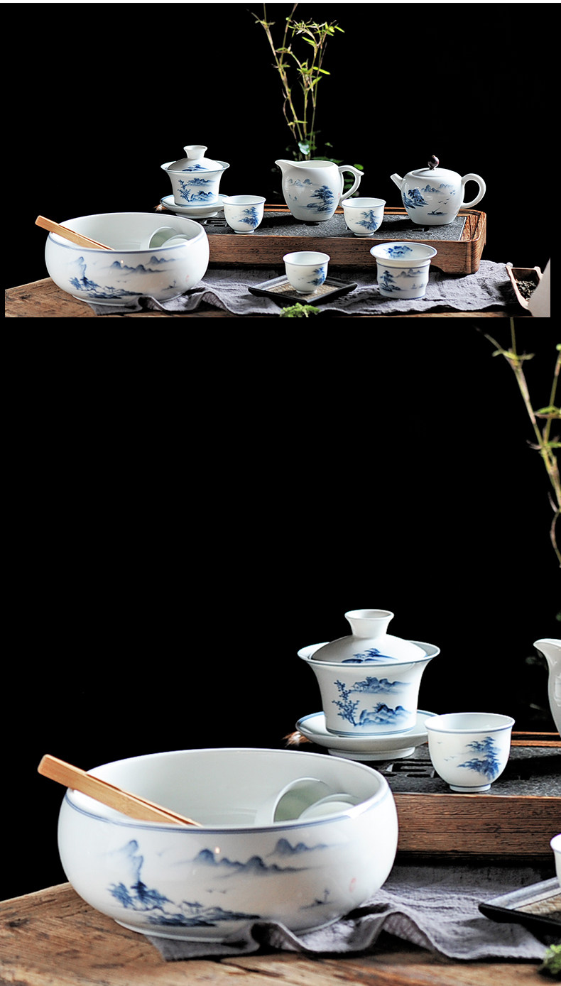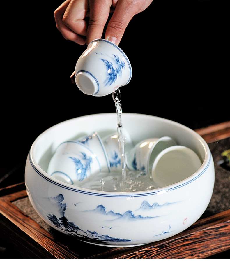Сине-белый очень большой ароматизированный чай, керамическая чайная чашка, ручная роспись