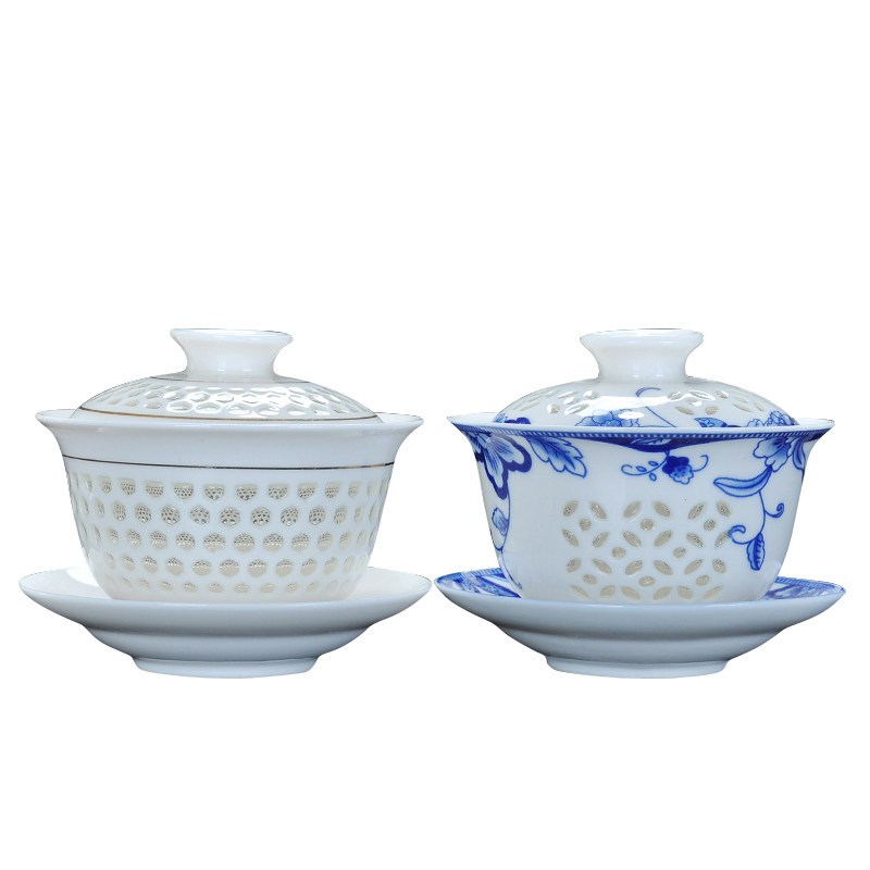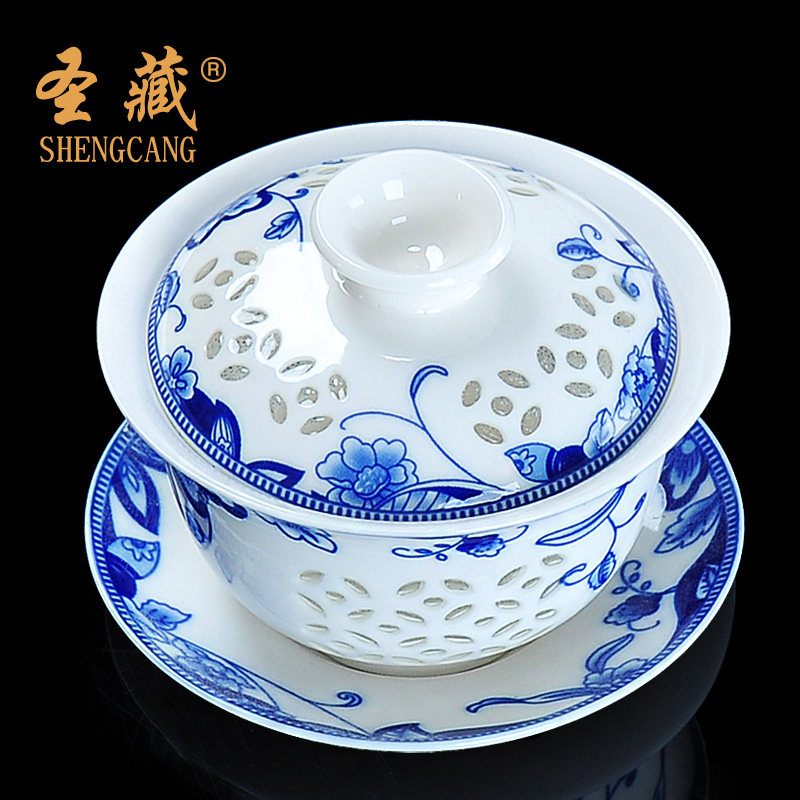 圣藏 Керамическая чайная чашка, сине-белая крышка, чай