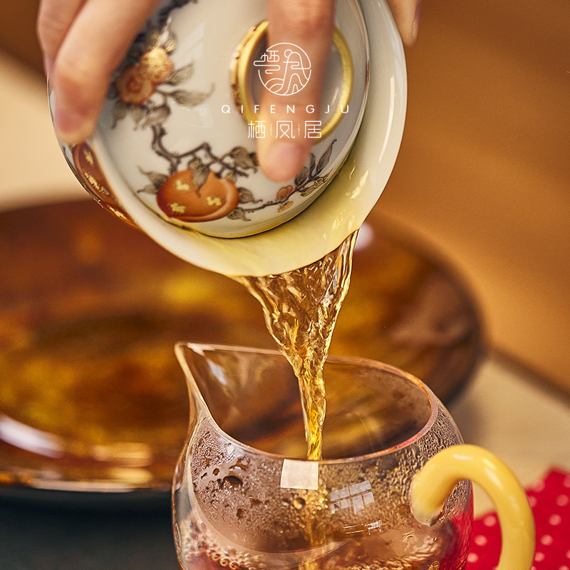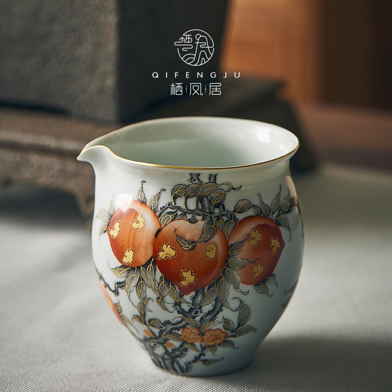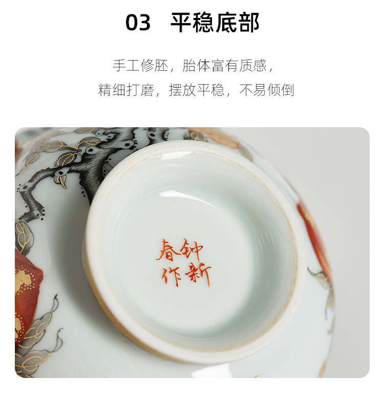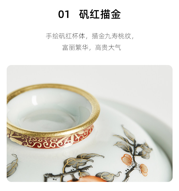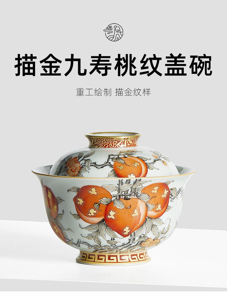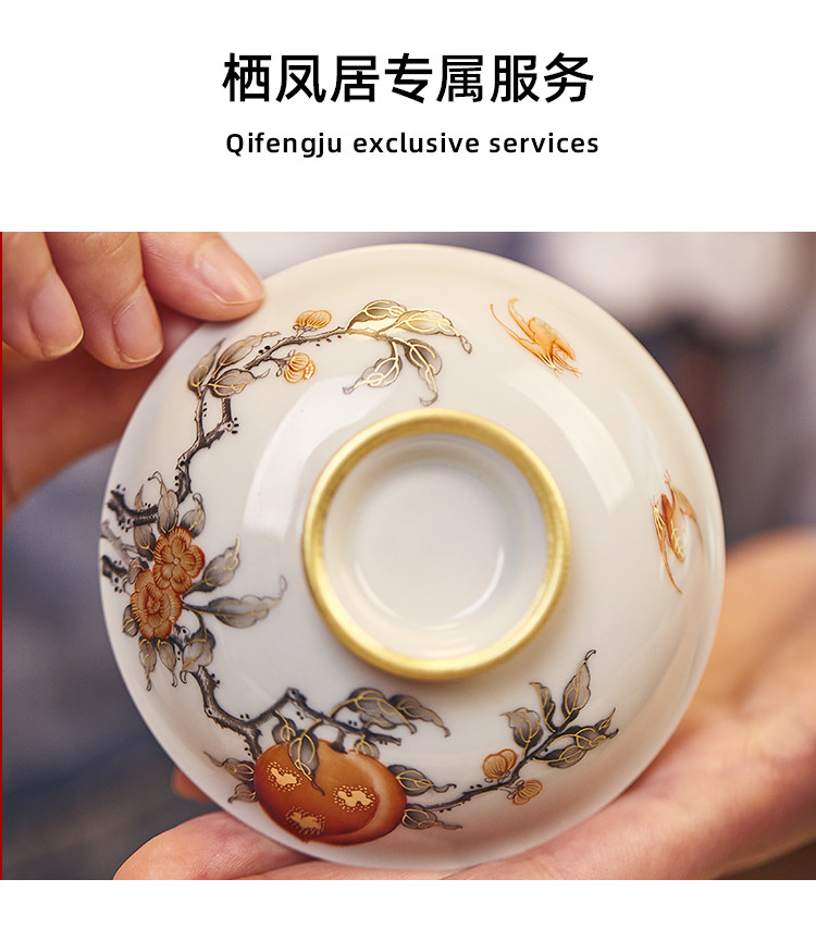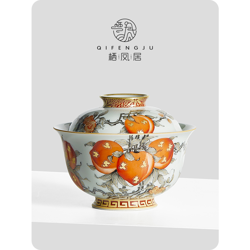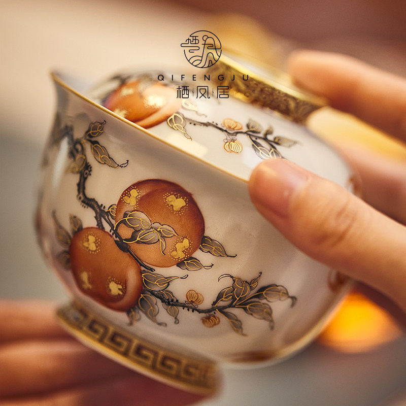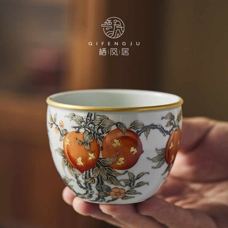 Qifengju jingdezhen квасцы красный тракт золотой jiushou peach patch patch чаша керамический чайный буфер