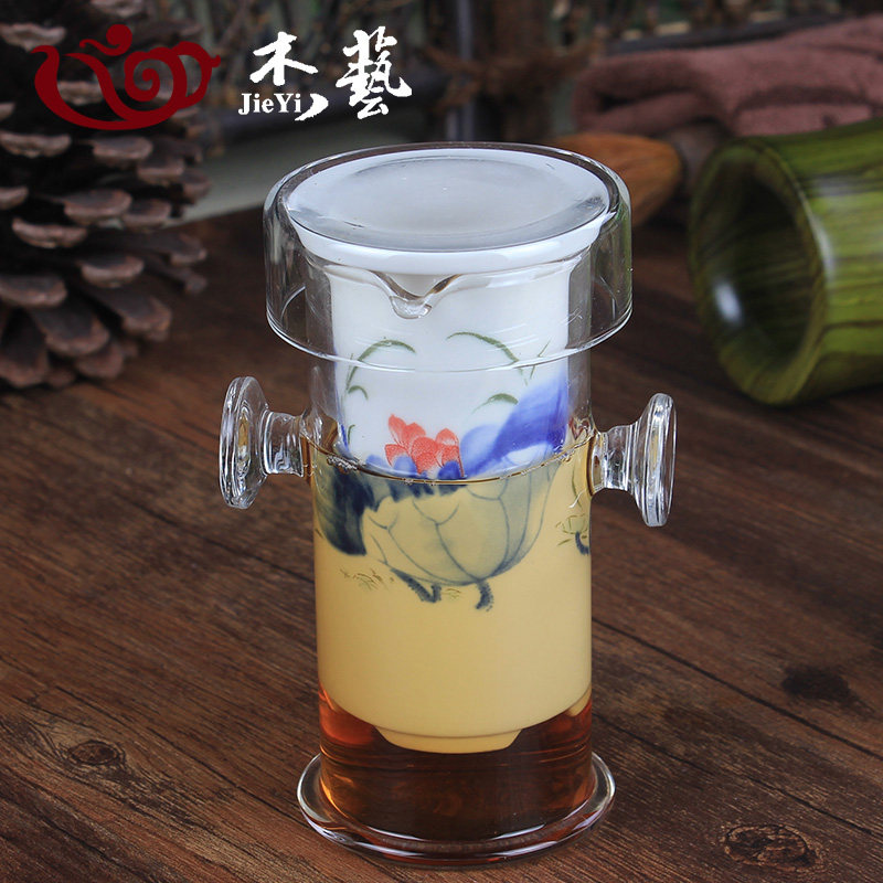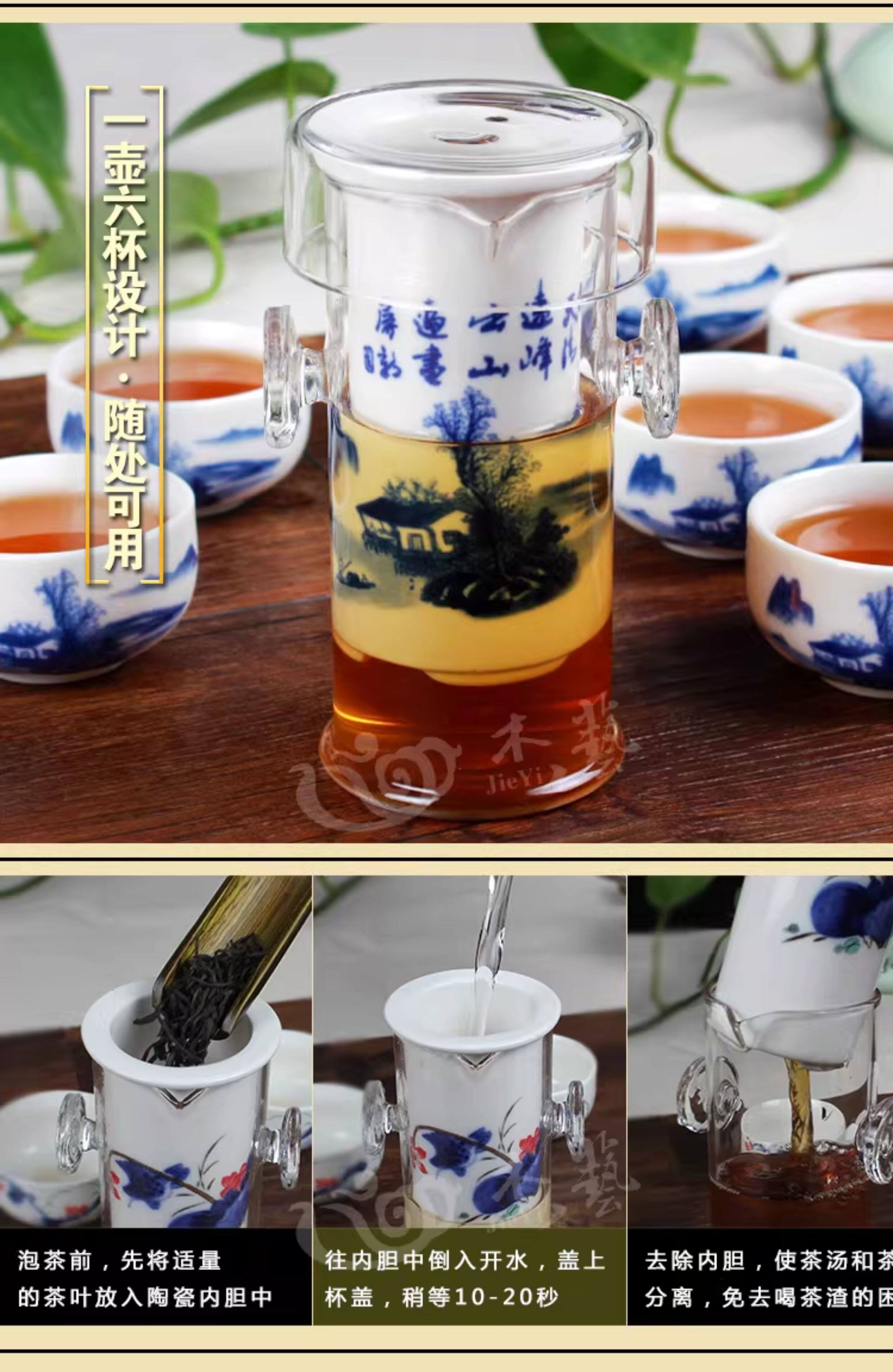 Стеклянный чай, сине-белый вкладыш из нержавеющей стали, фильтр, чайный сервиз, комплект