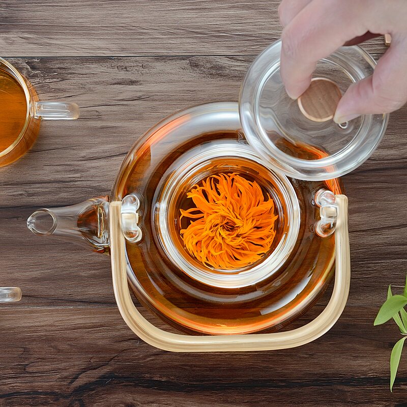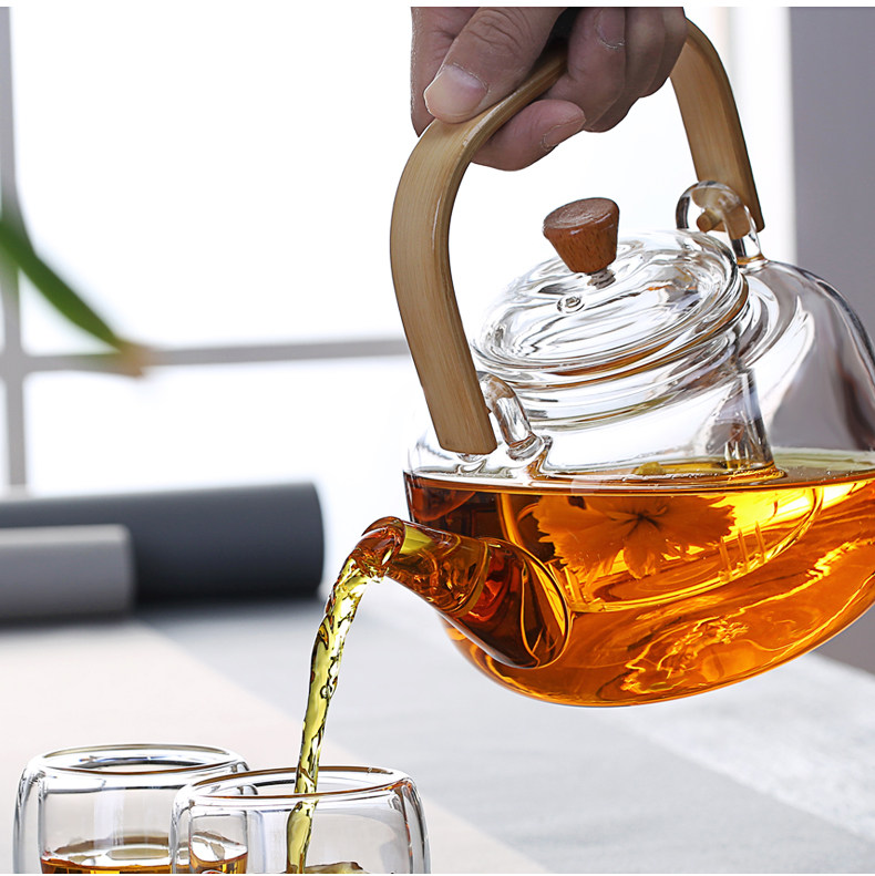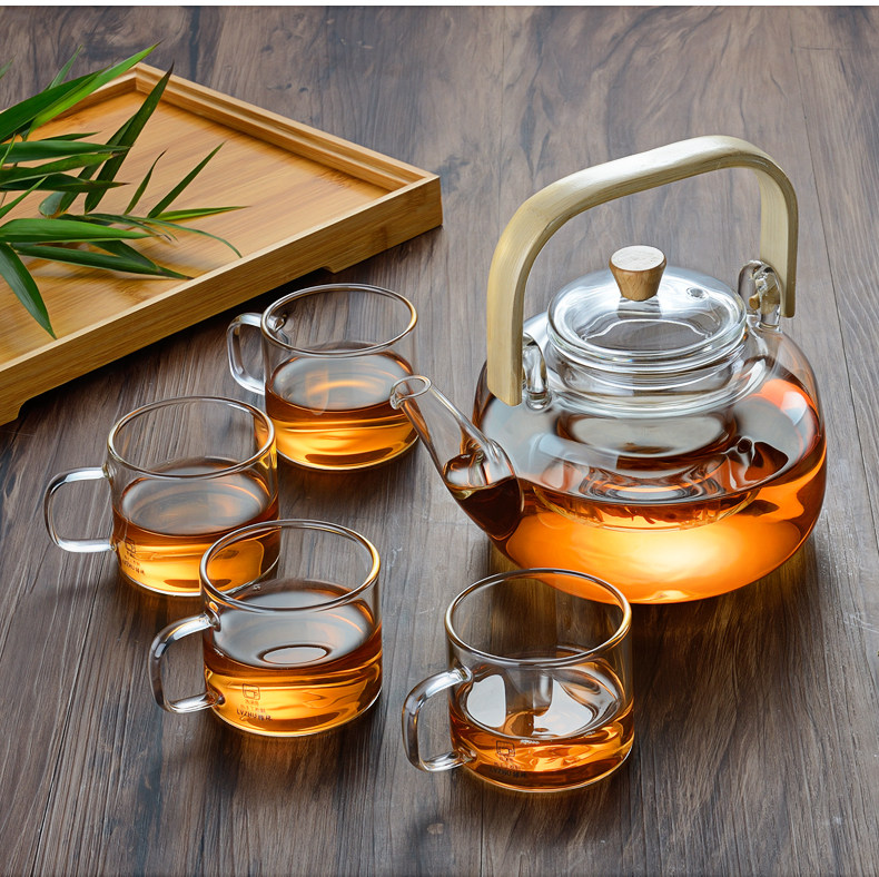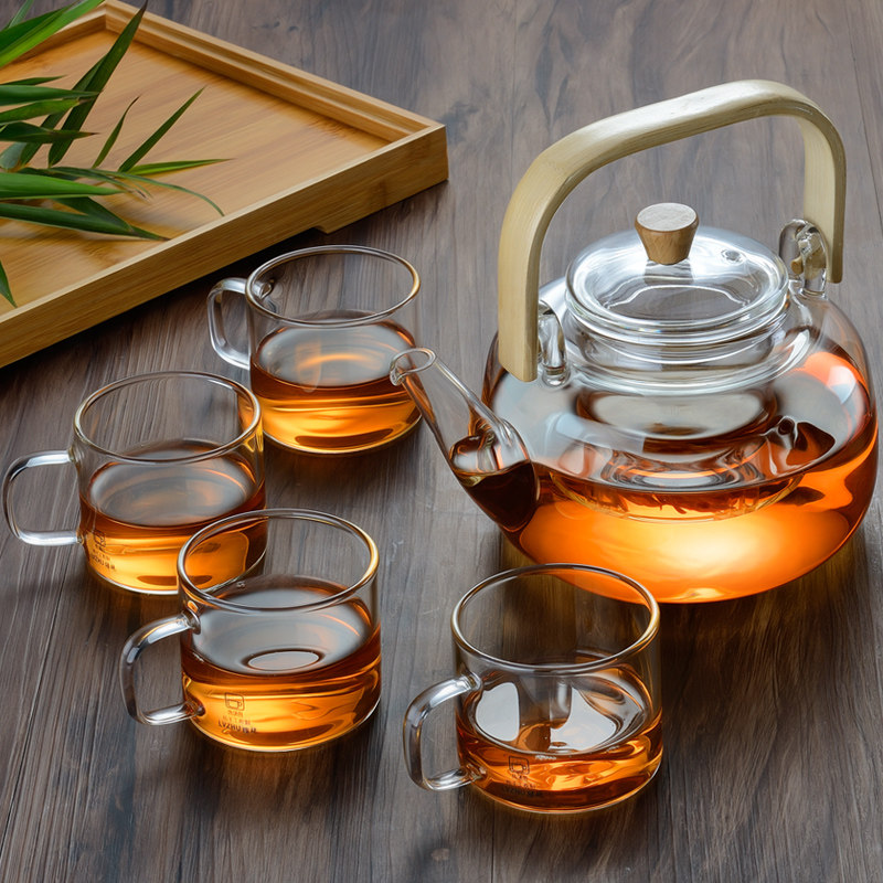 Чай, стеклянный заварочный чайник, чайный сервиз