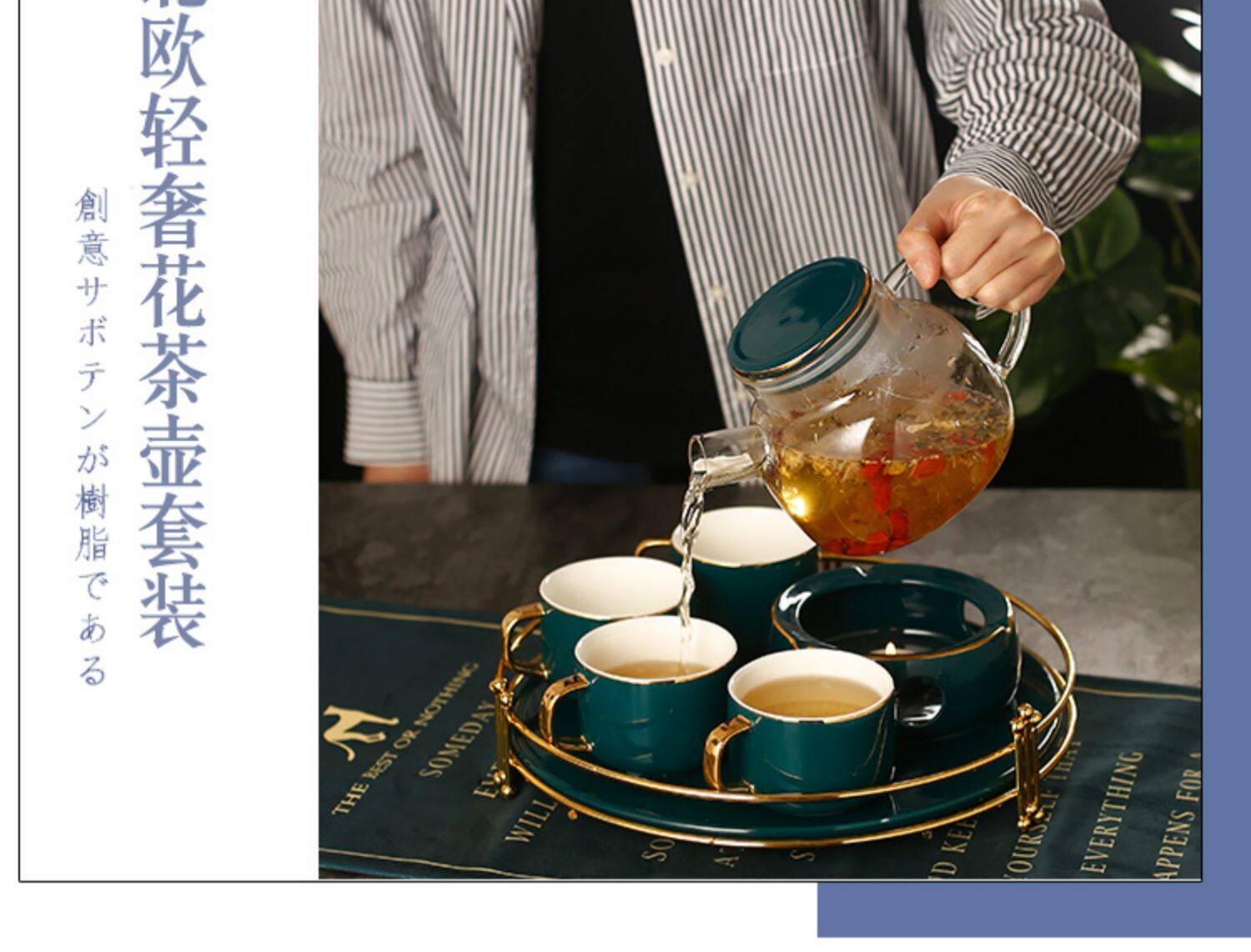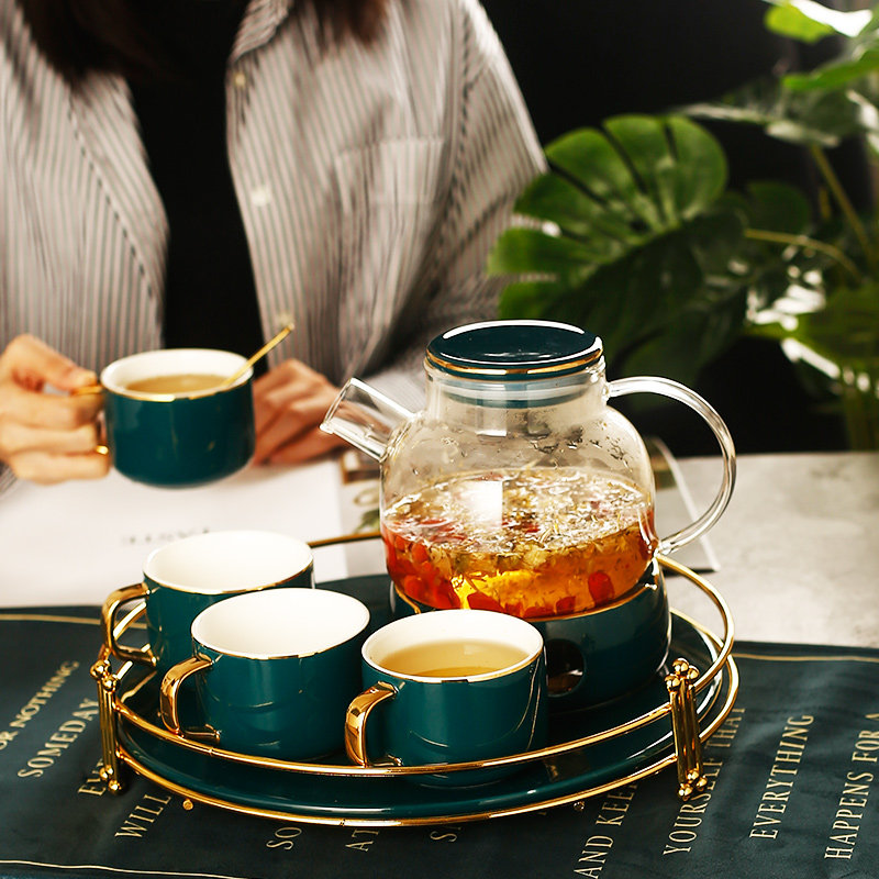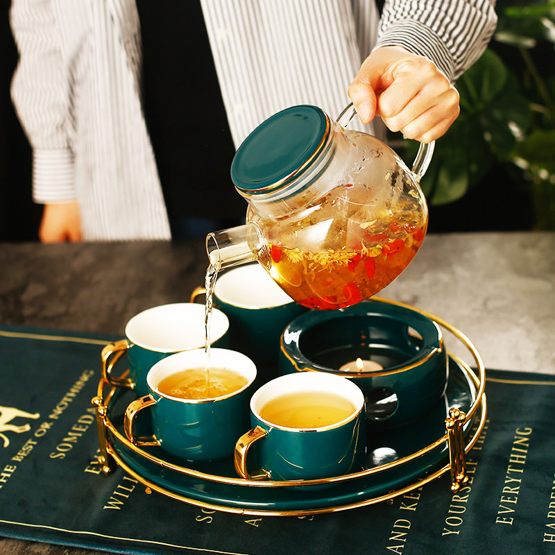 Свеча, стеклянный заварочный чайник, фруктовый чай, керамический ароматизированный чай, чайный сервиз, увеличенная толщина