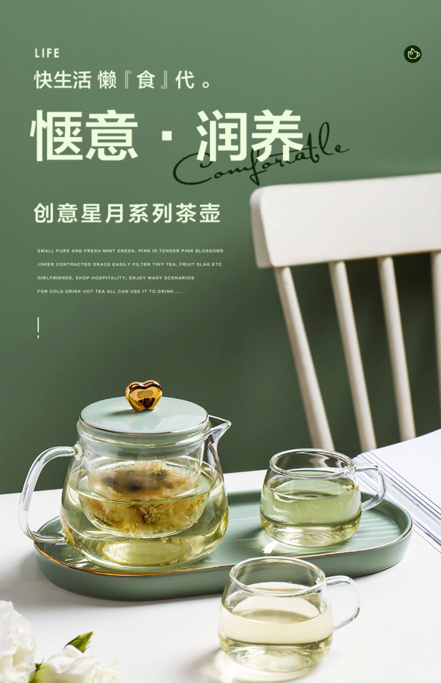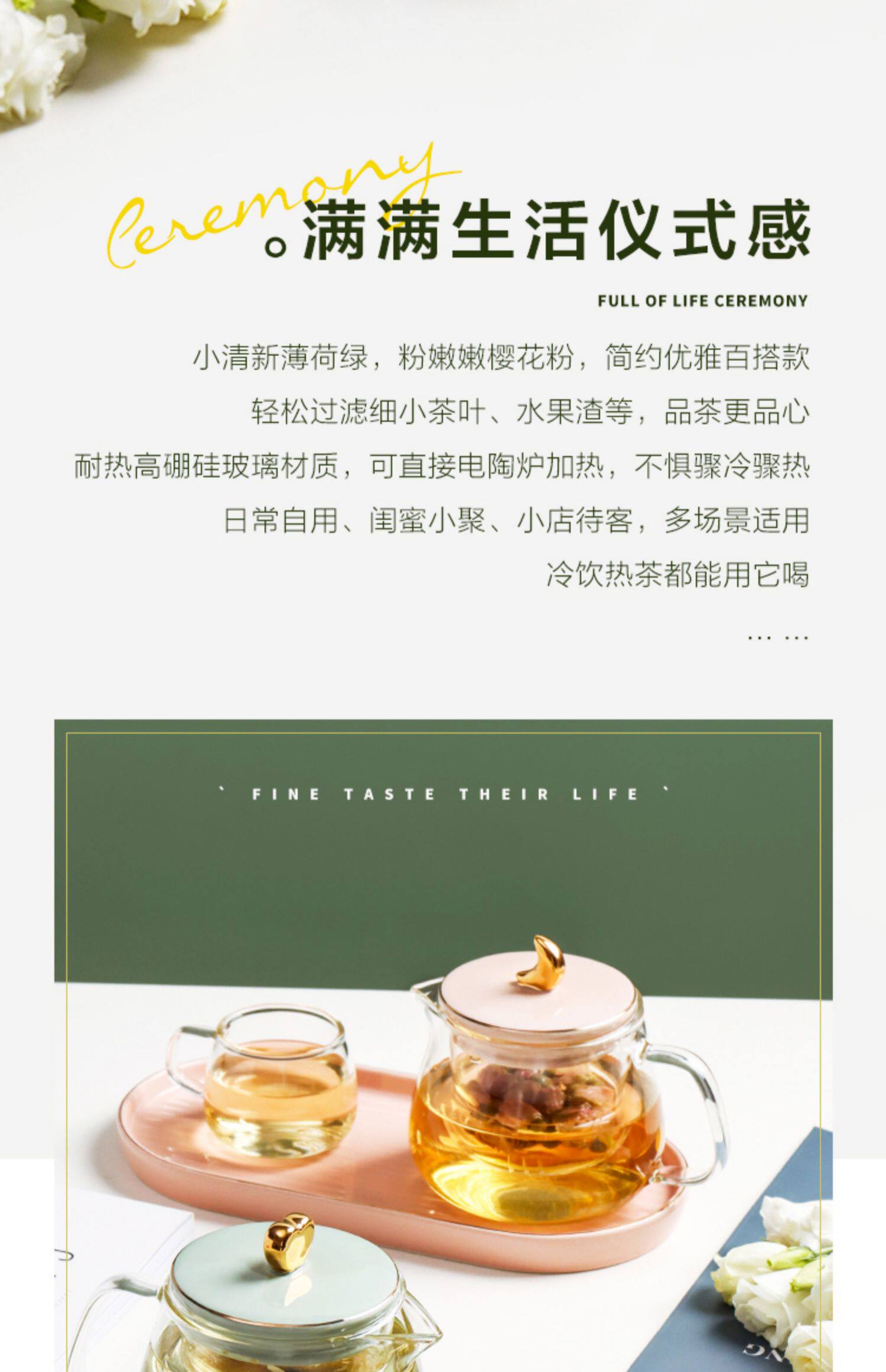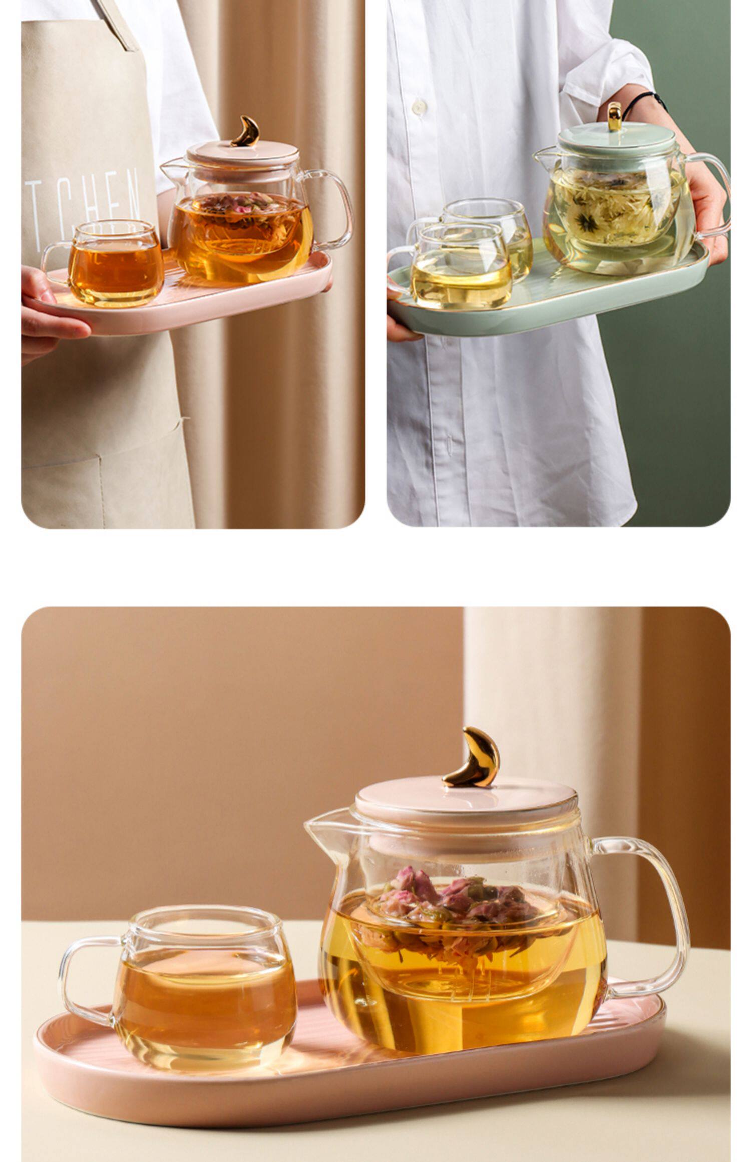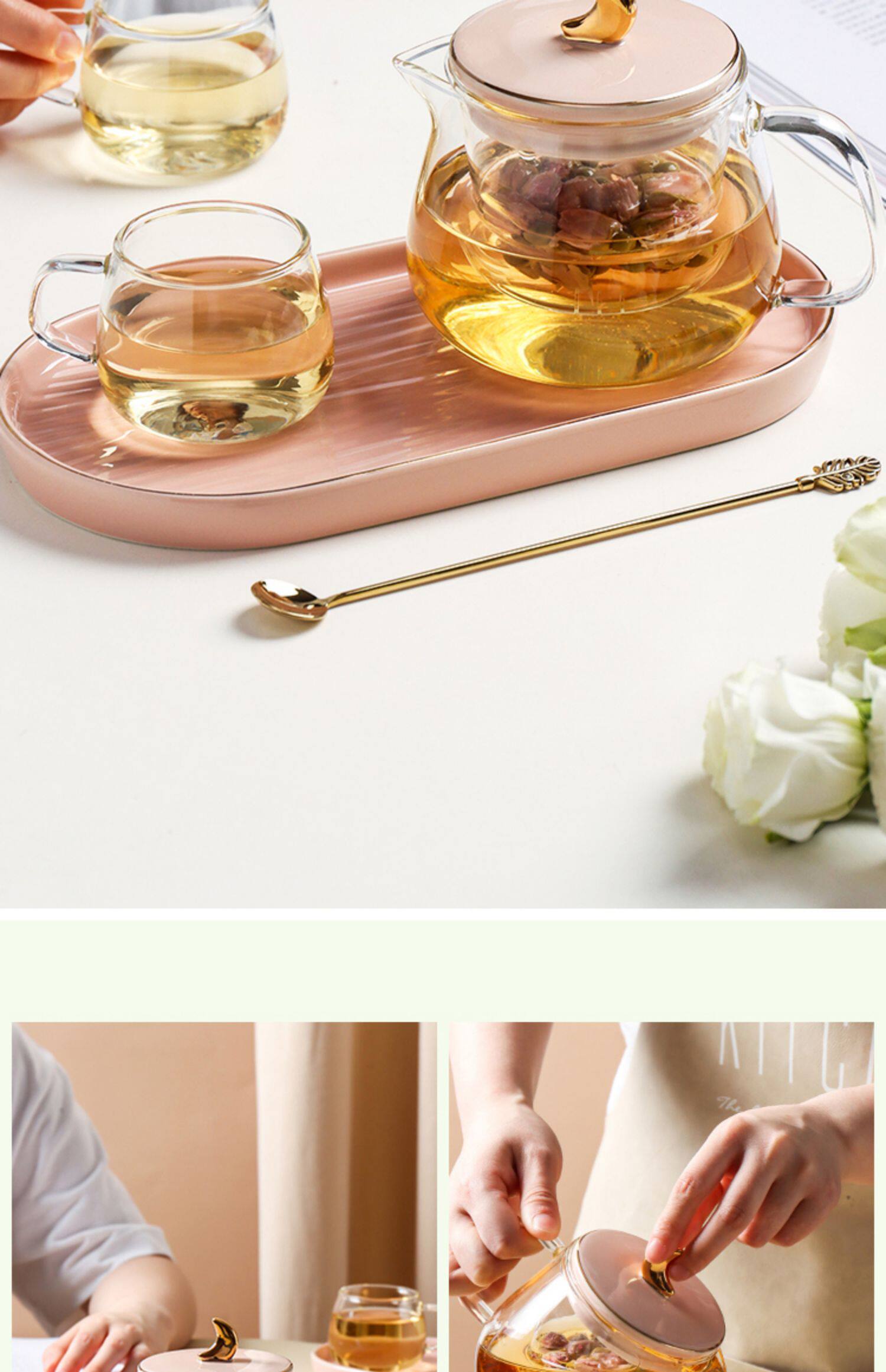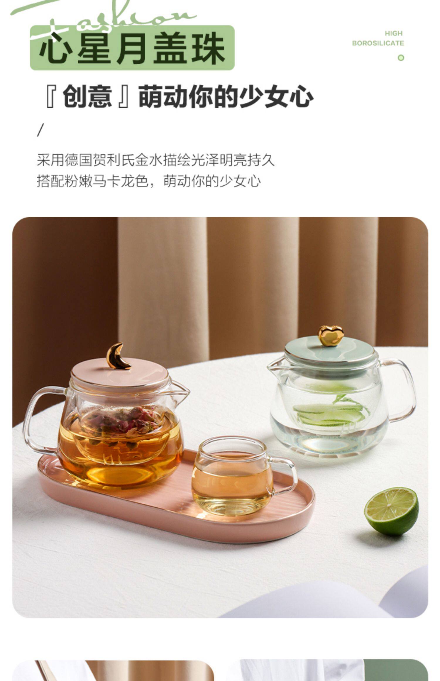 Стеклянный заварочный чайник, милый фруктовый чай в форме цветка, чайный сервиз, комплект