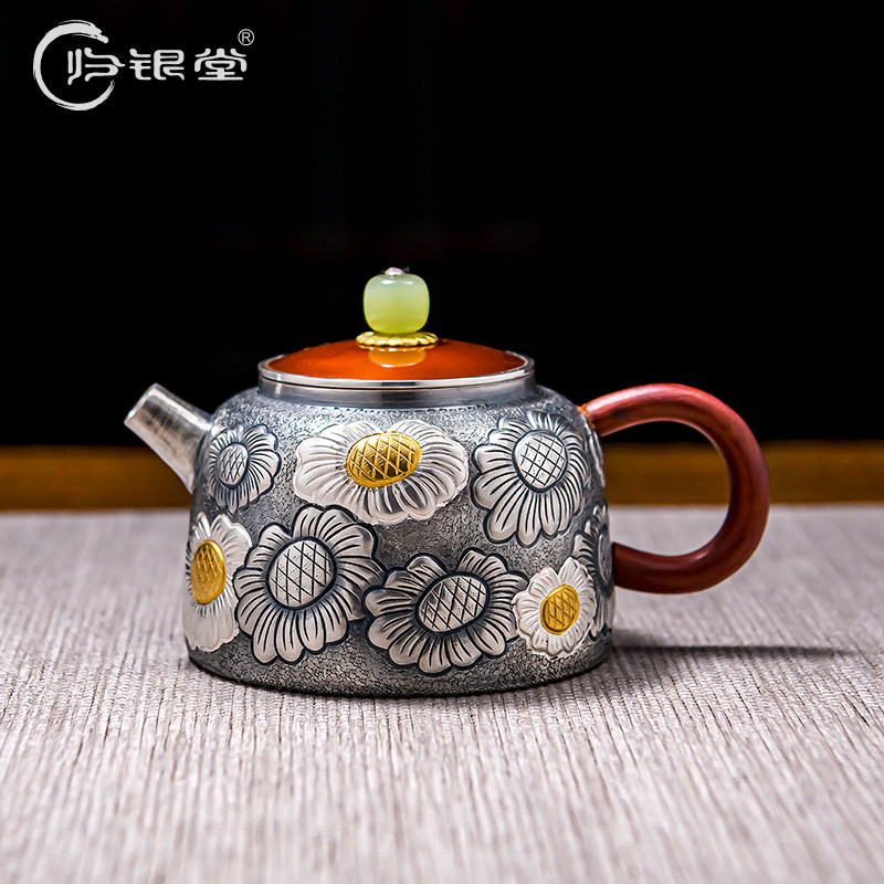 Чай, заварочный чайник ручной работы, ретро серебряный браслет, чайный сервиз, серебро 925 пробы, китайский стиль