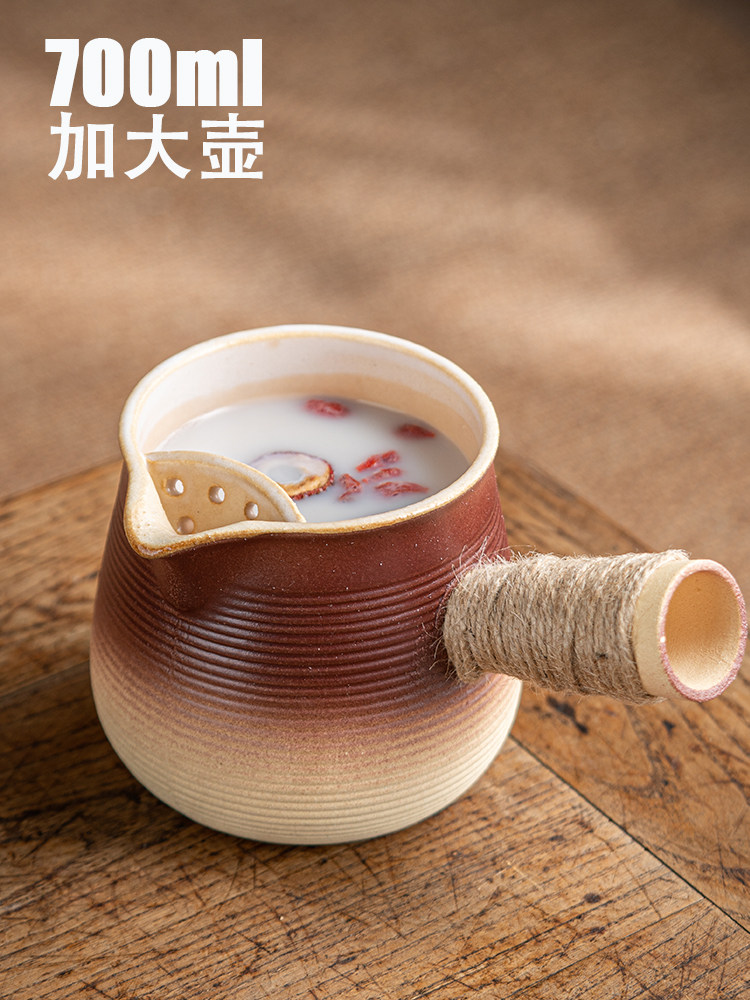 Чистое красное жареное молоко банка с горшечным чайником, жареное чайное чайное чай