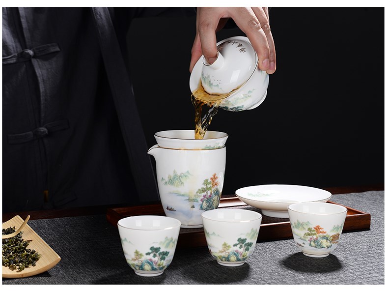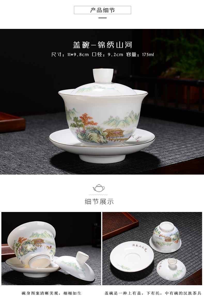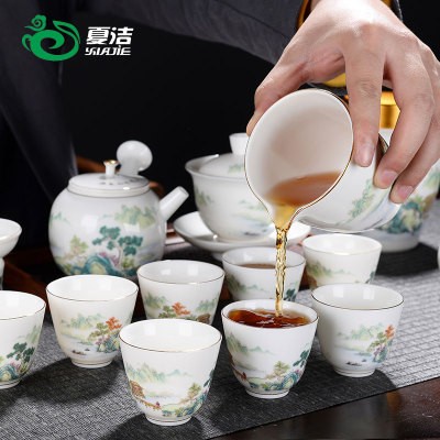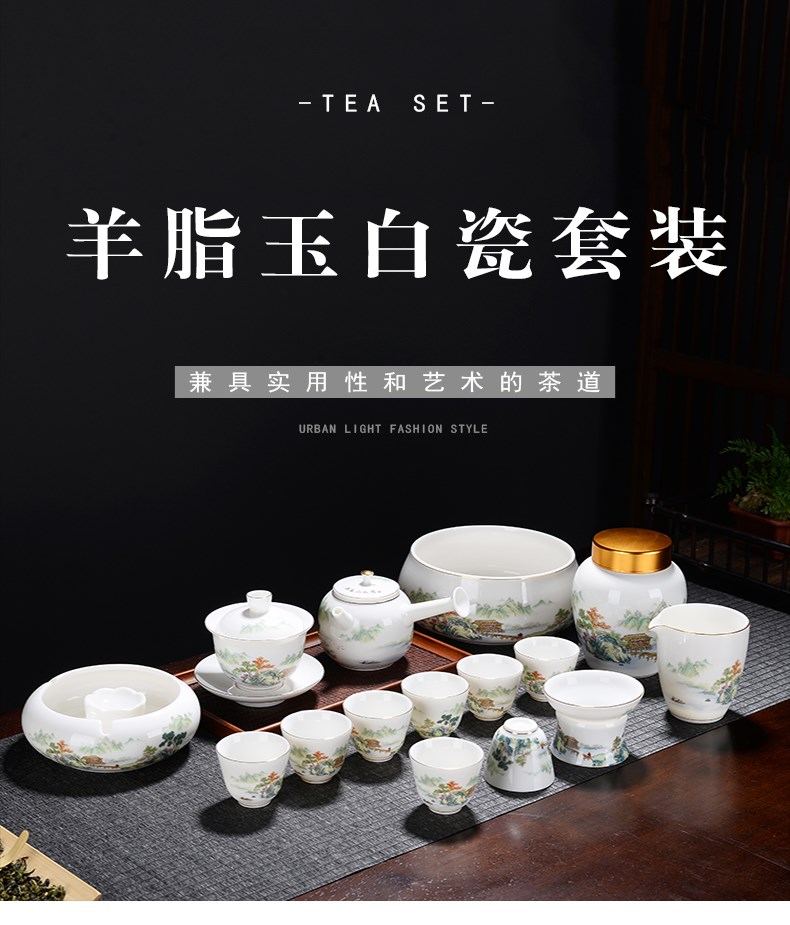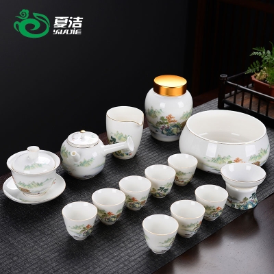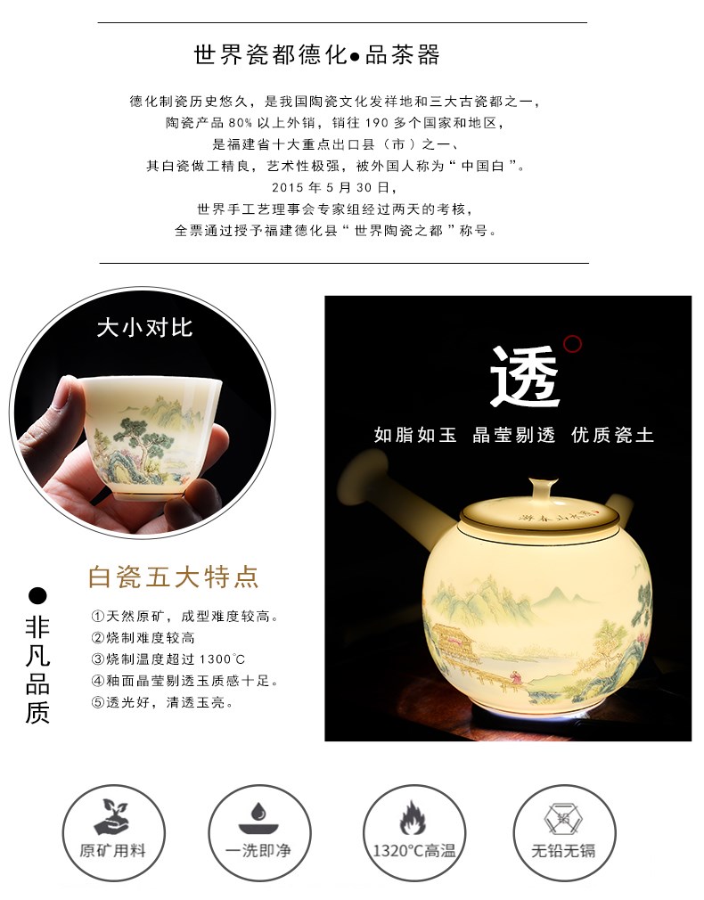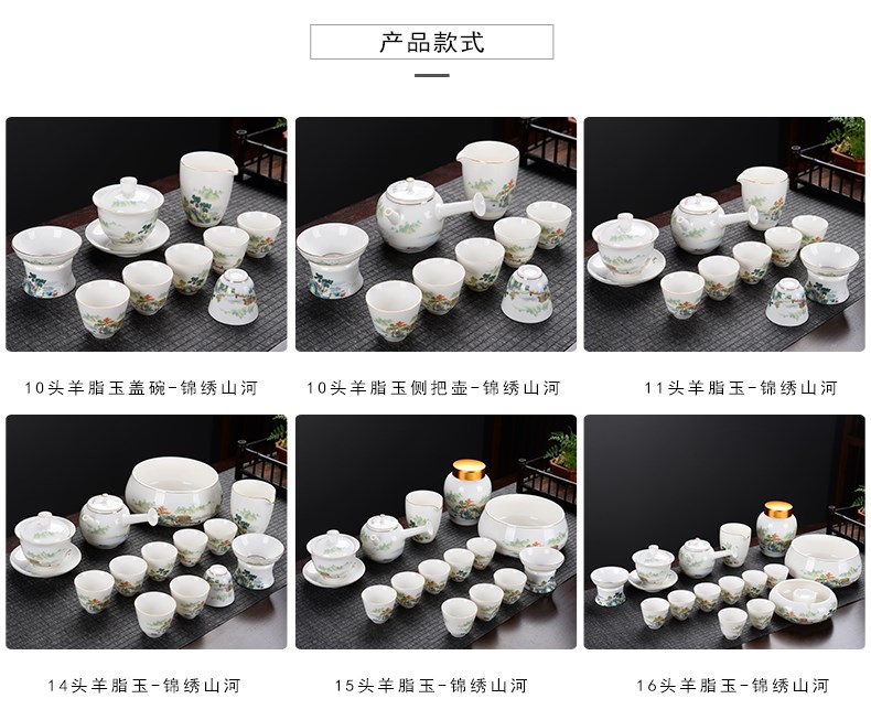 - 16-головный бараний нефрит-Великолепные горы и реки (с горшком с боковой ручкой)