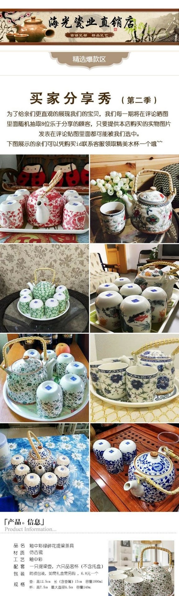 | Цвет: | Цинминг Шанхе Ту, Пион, Синий Джуба, Белый чай, 12 золотых сверчков, Красный полимер, Синий Вуфу, Зеленый цветочный, Сине-белый, У Ваншоу нет желтого реки, Красный цветок, Зеленая слива, Синий цветок, Восемь бессмертных, Семь фей, Более чем достаточно каждый год, Дракон, Цветок и птица, Если вам нужно принести поднос, чтобы снимать здесь, оставьте сообщение о чае |