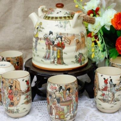 Весь набор наборов чайной гончарной гончарной головы сломал пеоны Особые грубые чайники Древние цветы.Чай набор 7 устройства чайный поднос династия Qing Red