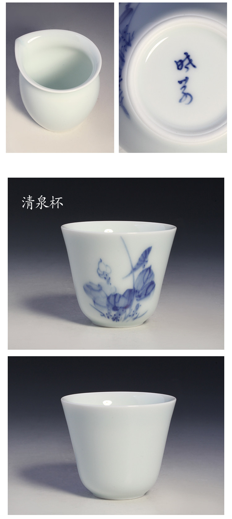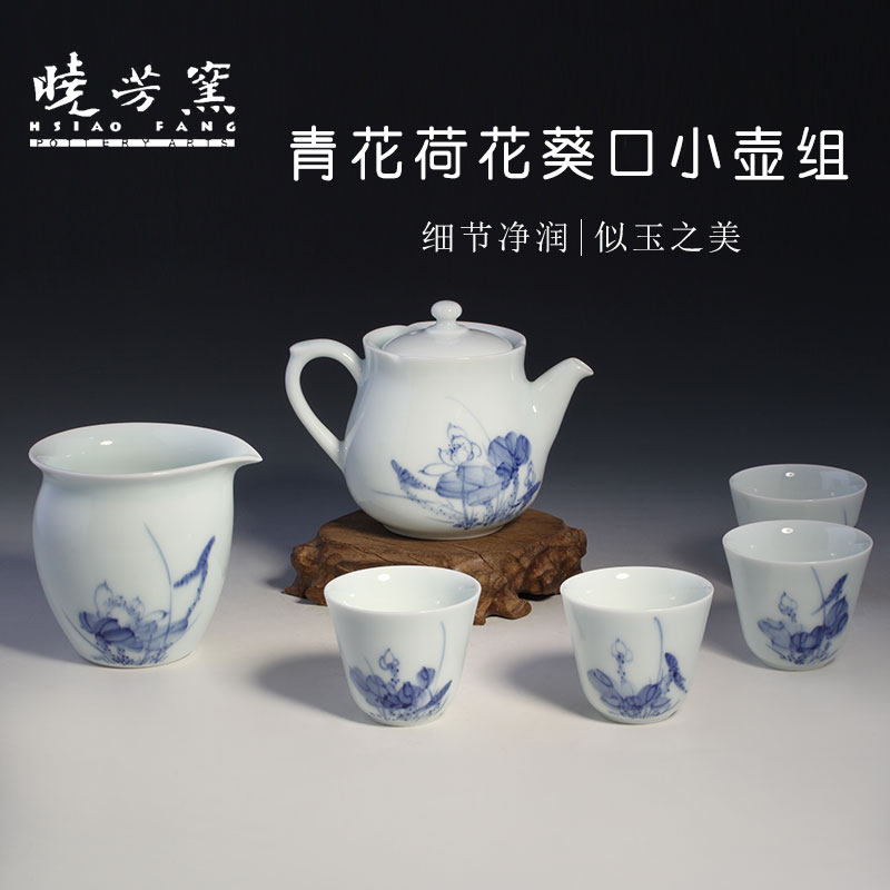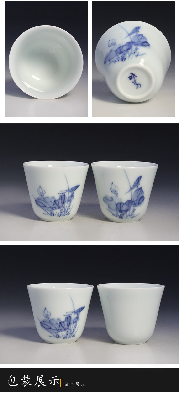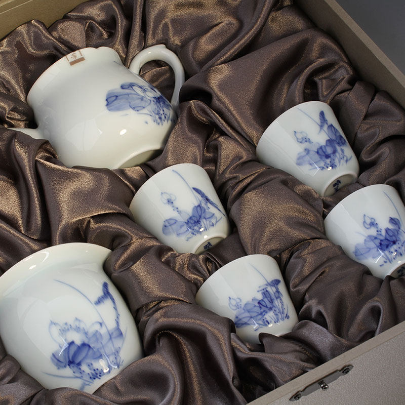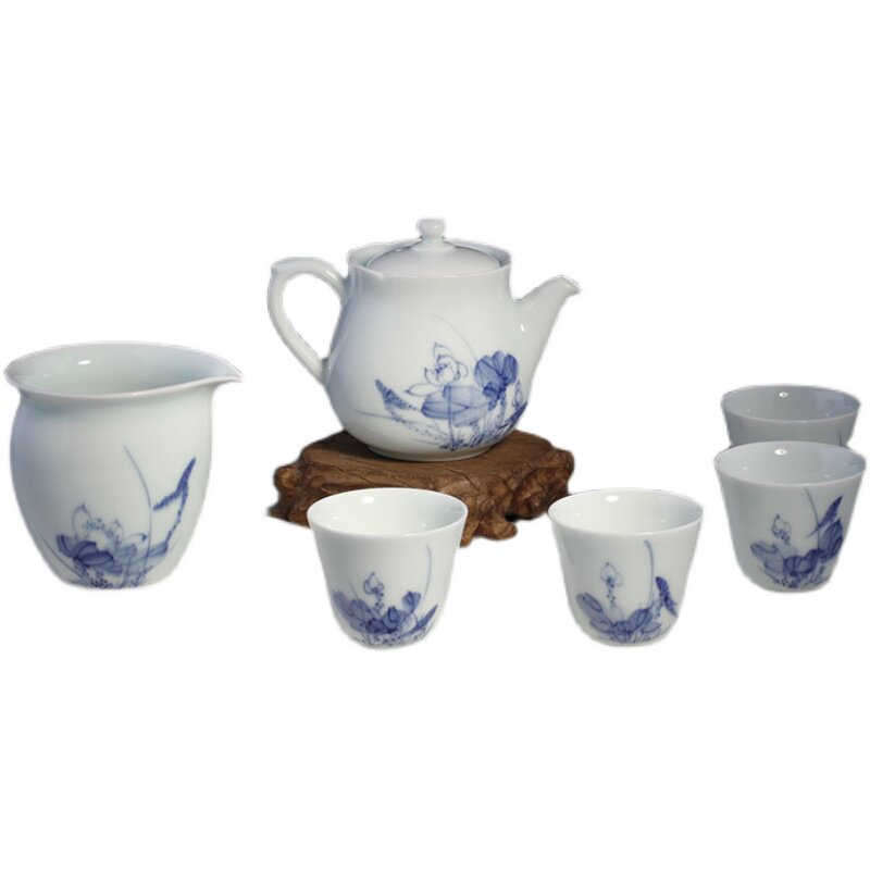 Сине-белые лотосы, сине-белая чайная чашка, чайный сервиз, набор, ручная роспись, 4 штуки