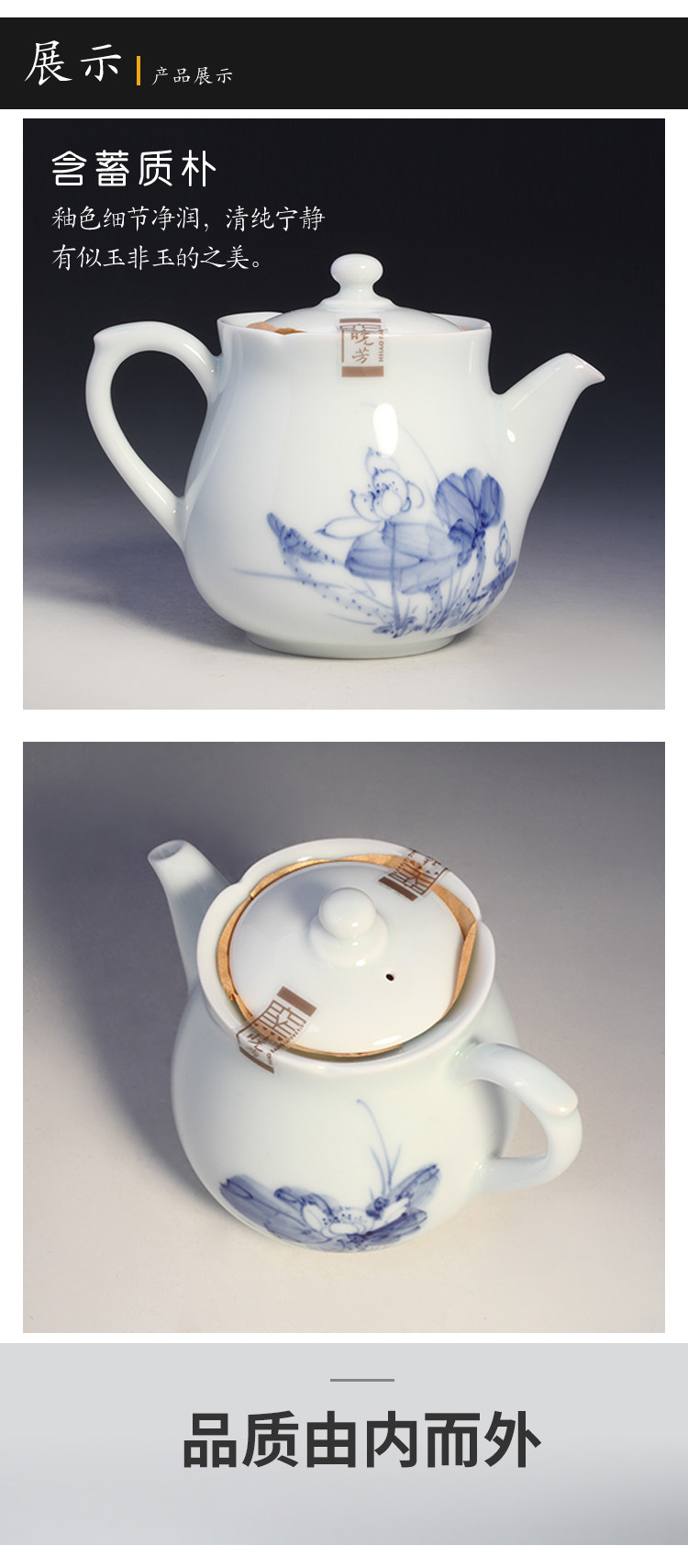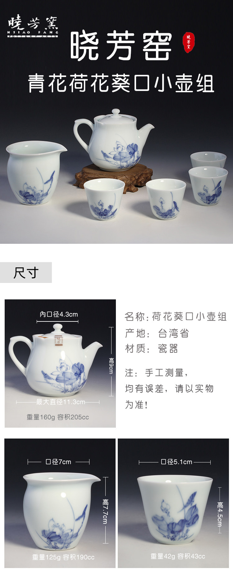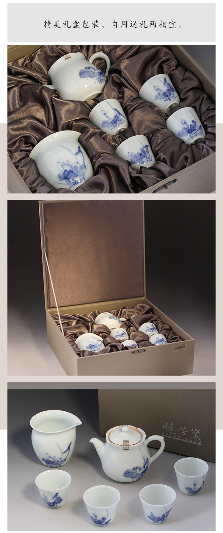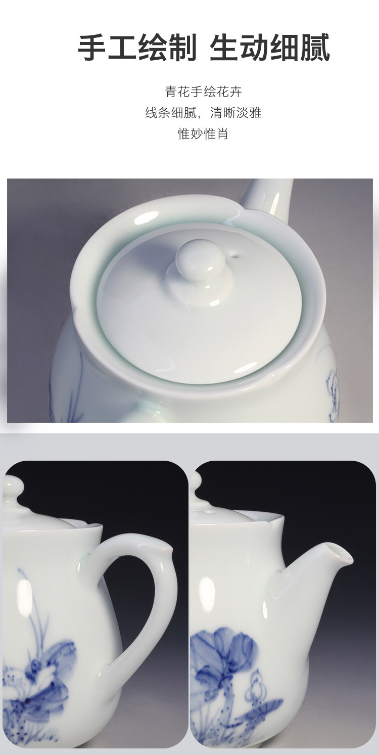 Сине-белые лотосы, сине-белая чайная чашка, чайный сервиз, набор, ручная роспись, 4 штуки