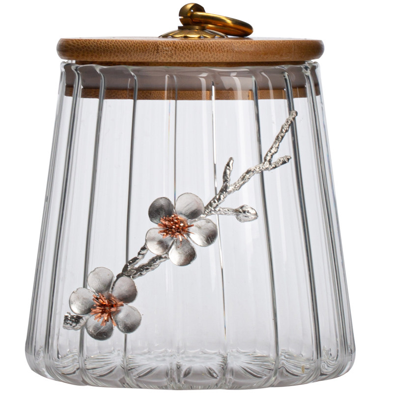 旧望格 Оловянное стеклянное стекло с цветком, простая стеклянная банка для чая с бамбуковой крышкой, бытовая банка для хранения чая, герметичная банка для чая с цветами, баночка для закусок из сухих товаров