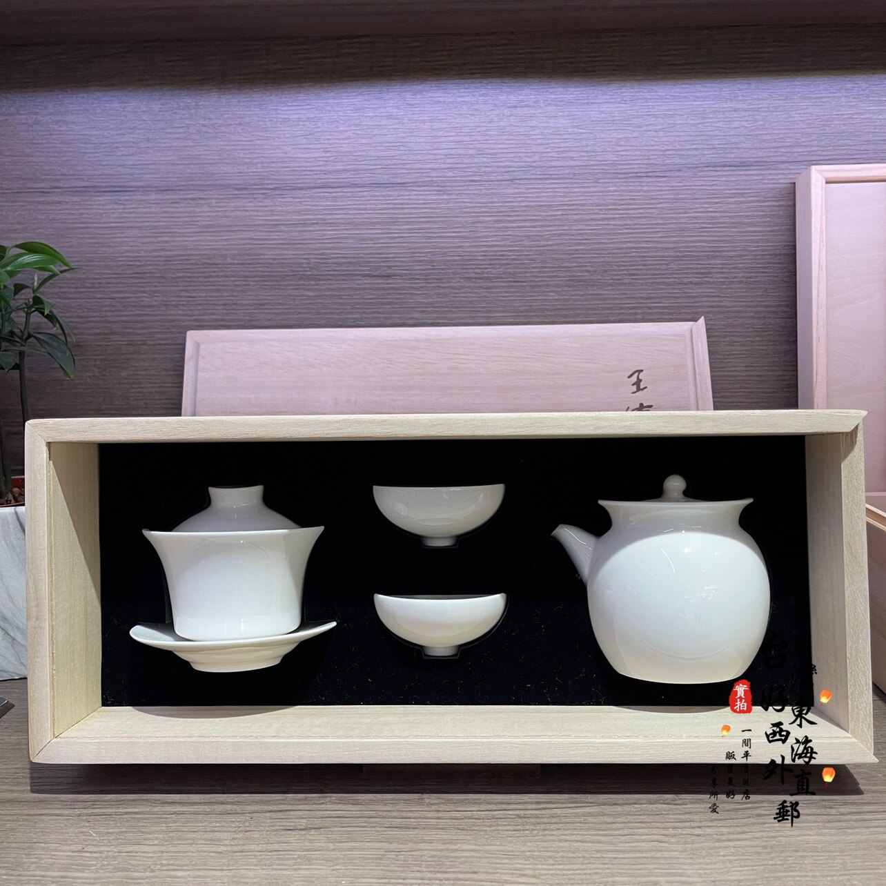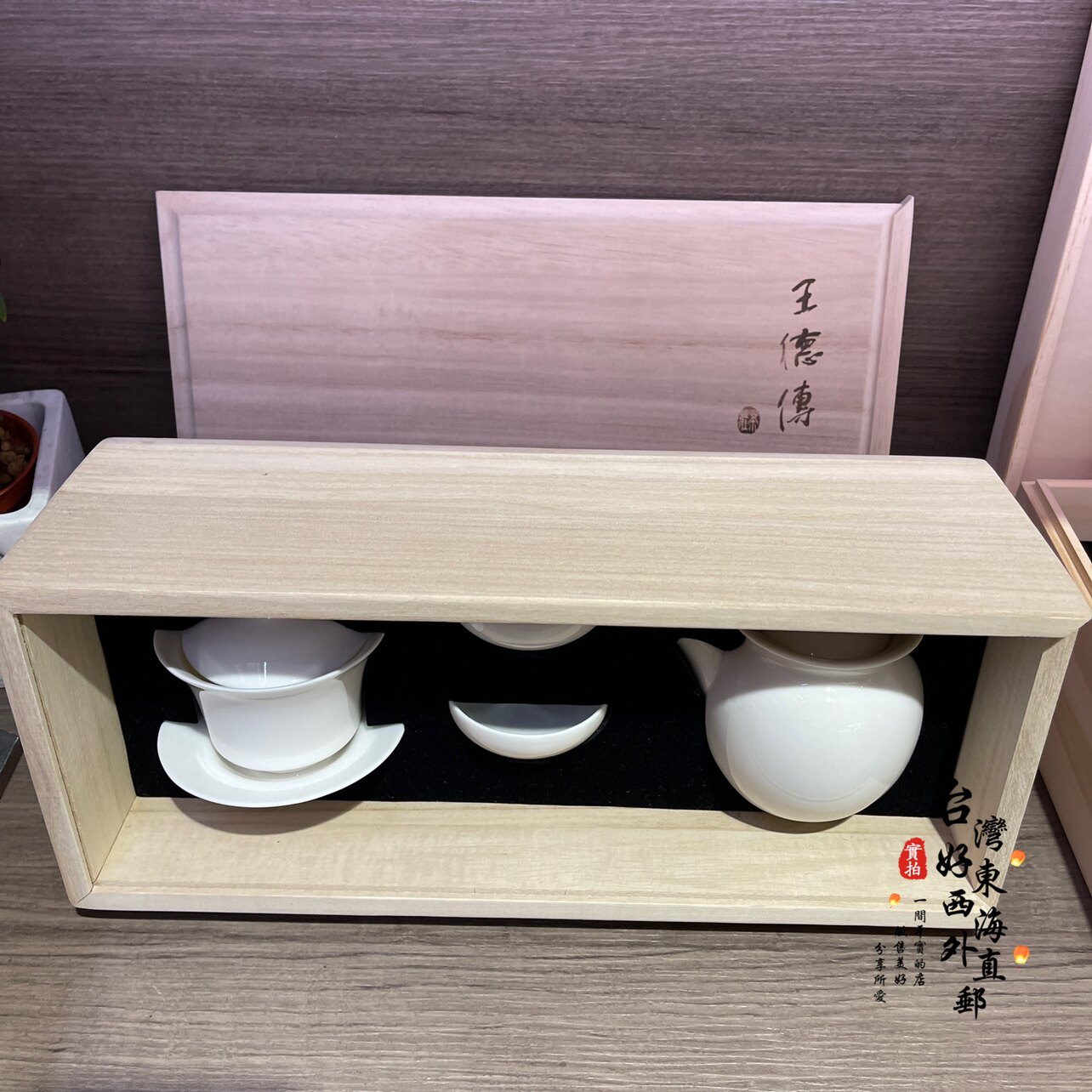 Wang Dechuan Чайный сервиз для начинающих, Тайваньская белая фарфоровая чаша с крышкой, чашка для чая с морской чашкой, деревянная коробка, чайный сервиз, подарочная коробка