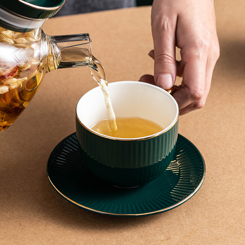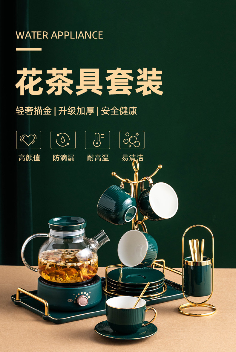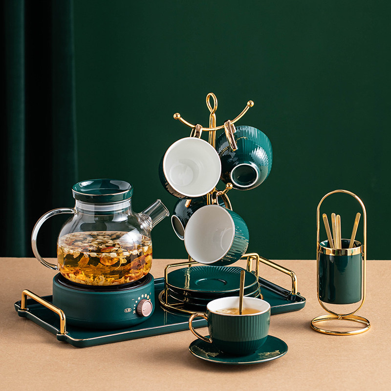 Керамический чайный сервиз, комплект для домашнего использования, ароматизированный чай, стеклянный заварочный чайник, легкий роскошный стиль, европейский стиль