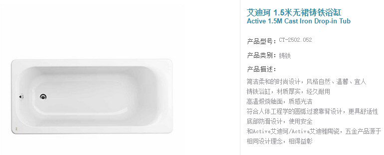 Бронирование ванной комнаты США -1,5 метра 2502 ванна 1,7 м. Чугут без юбки.