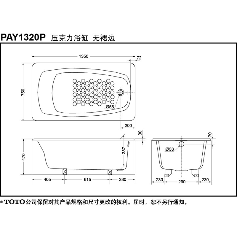 TOTO Акриловое встроенное средство для принятия ванны для домашнего использования для всего тела, ванна, 1.3м