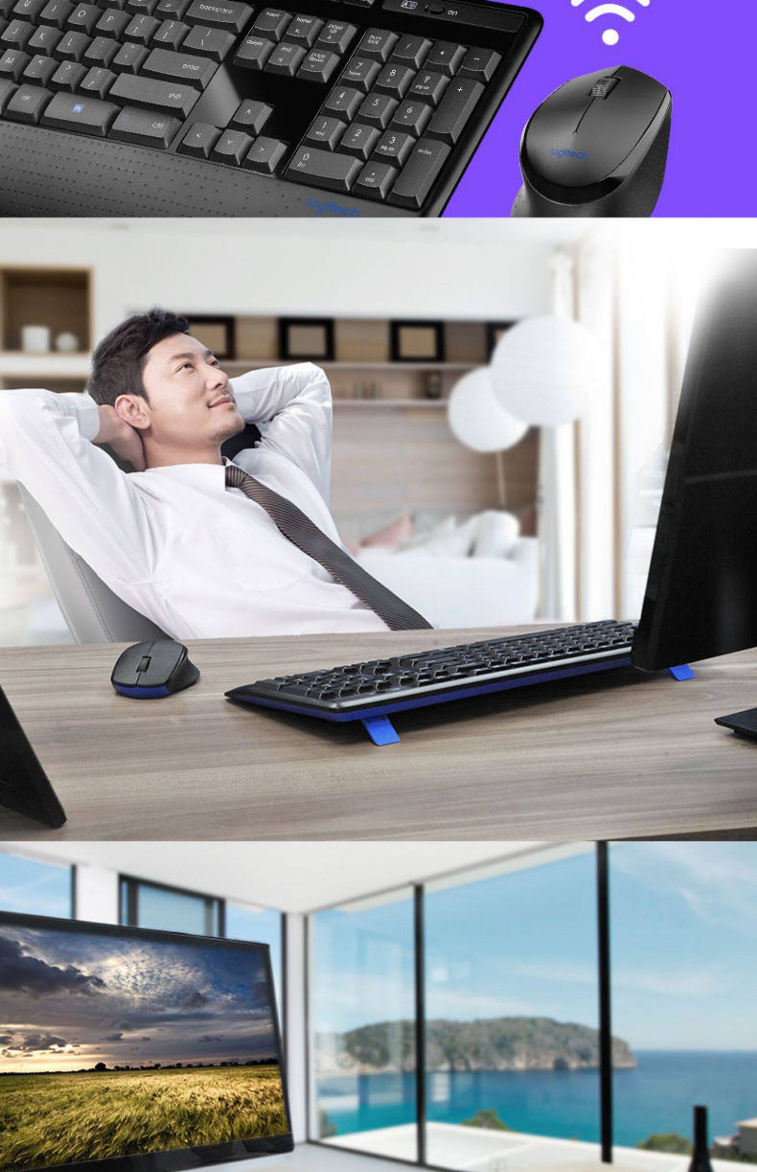 Logitech, беспроводная клавиатура, мышка, портативный комплект для офиса