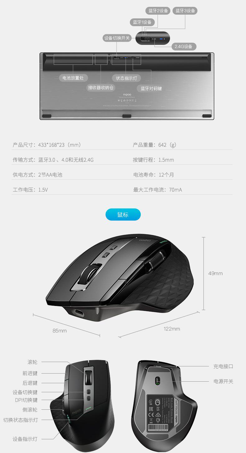 - MT980S Black Bluetooth Wireless Three -Mode Connection