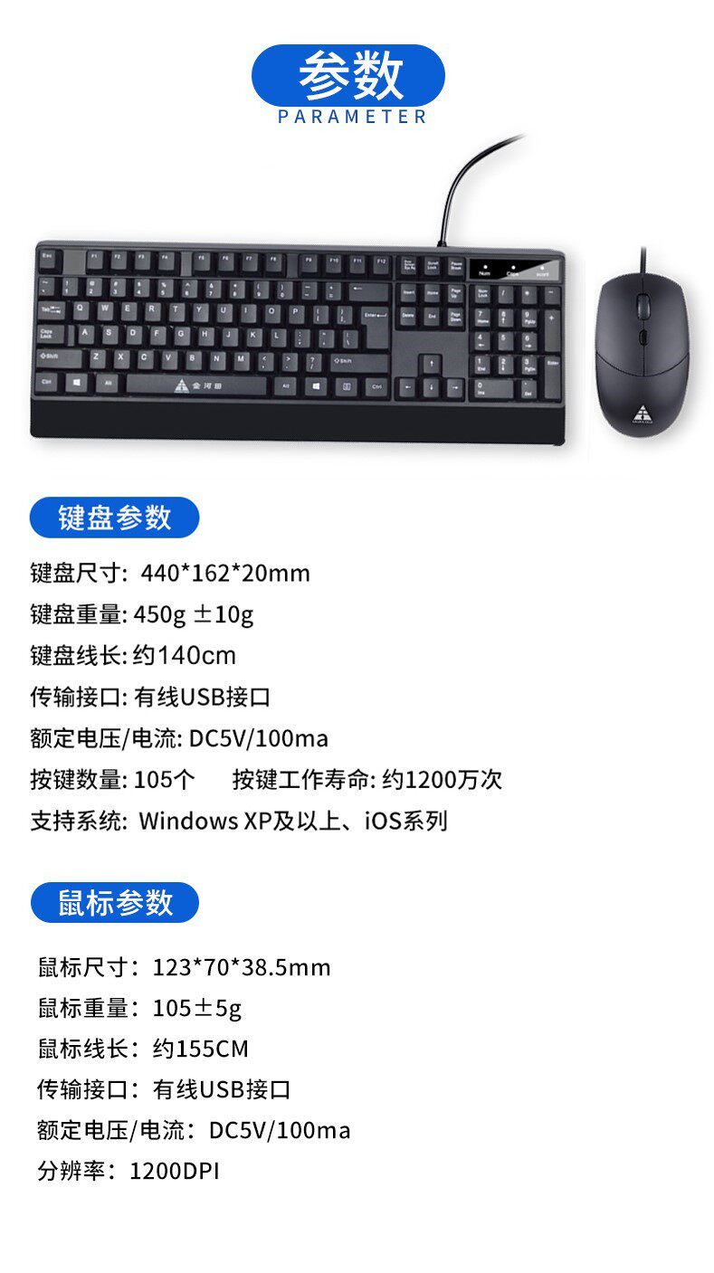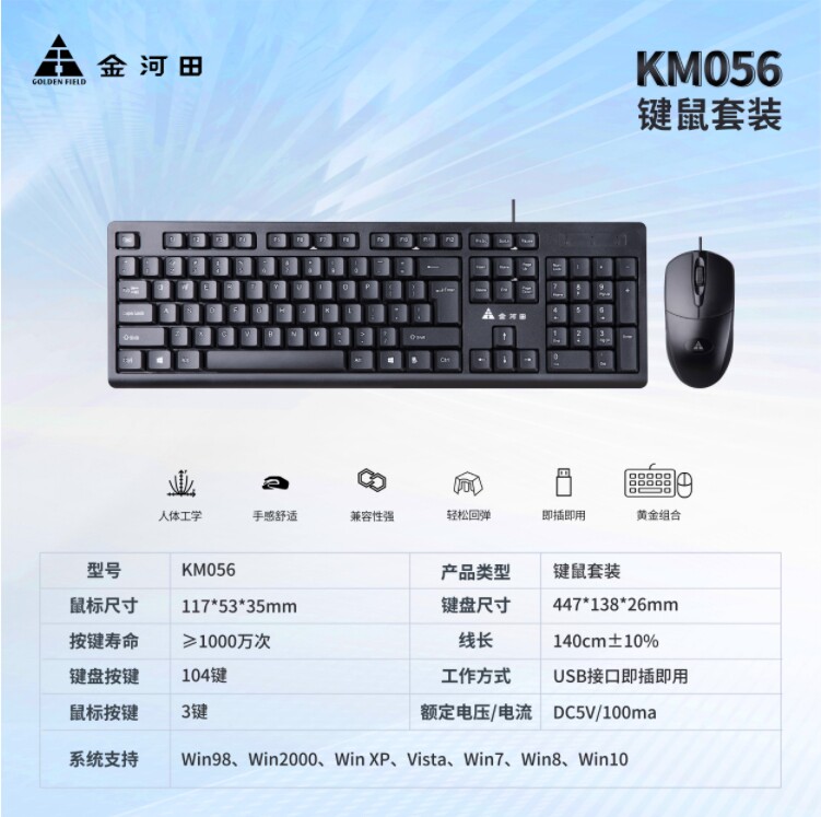 Jinhetian KM056 Настольная клавиатура Клавичная мыши Установите проводные клавиши Mouse USB -интерфейс настольный компьютерный офис