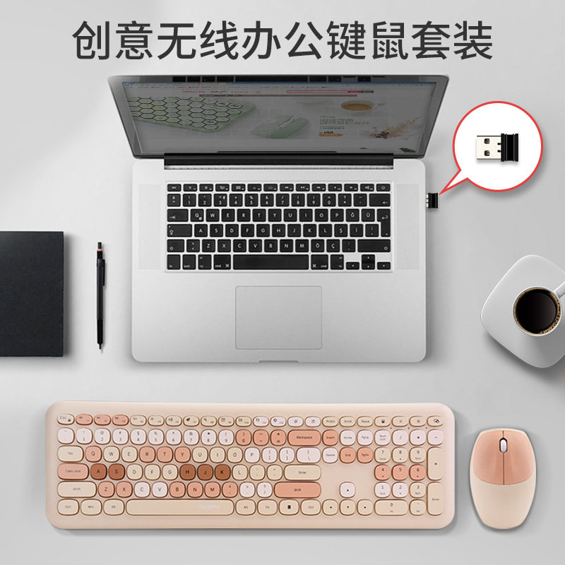 666 Стоимость номинания шоколадный беспроводной Bluetooth -ключ и мышь, набор девушек Механический ощущение желтого молока.