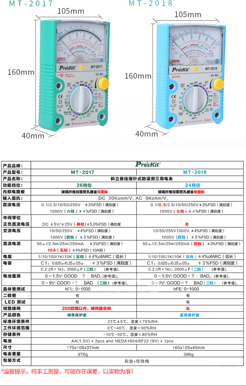 Тайвань Proskit Bao Gong Pointer Universal Meter Механический универсальный счетчик MT-2017N Токорный напряжение Таблица напряжения напряжения MT-2019 MT-2019
