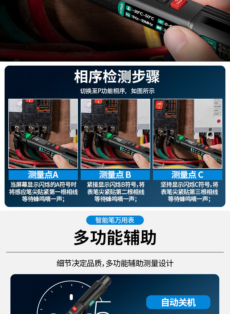 Портативные малые цифровые высокопозиционные щетки на основе универсального метра интеллектуальное анти -переживающее электроэнергетическое семейство семейства фазы последовательно обнаружение последовательности Универсальная таблица
