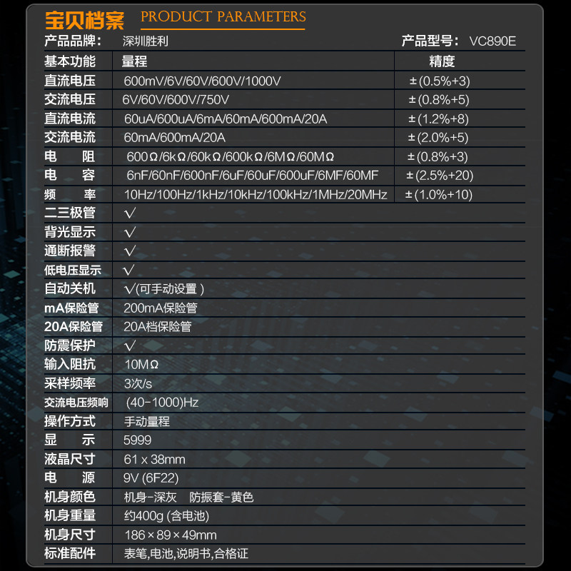 - VC890E Стандарт+20A Специальная таблица ручка