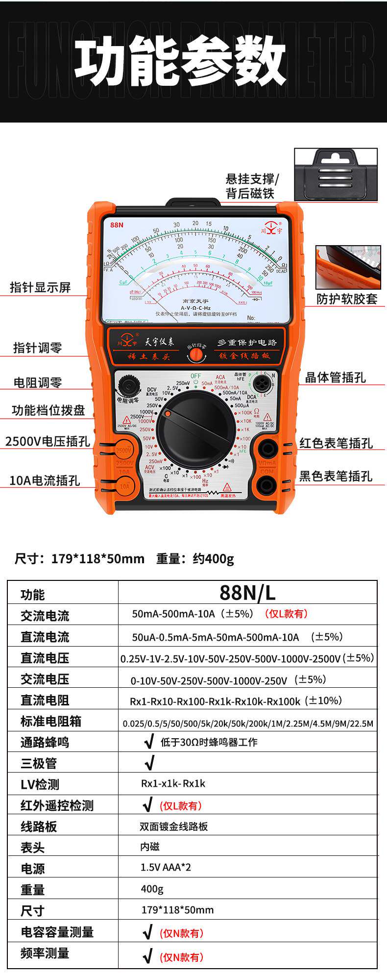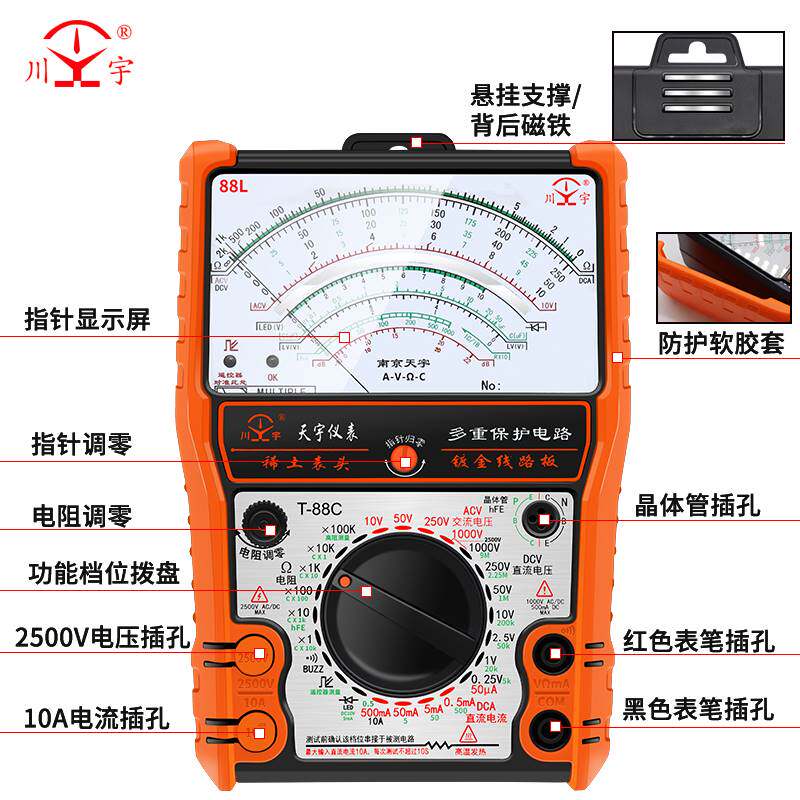 NANJING TIANYU 88N/L POINTER -Тип Универсальный метр механический высокопоместительный анти -охраняющий полнозащитный универсальный счетчик Внешний магнитный