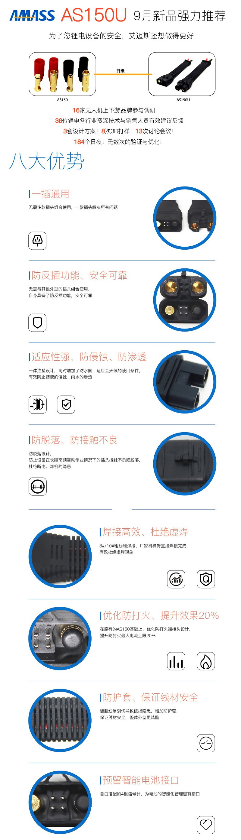 Пример: в руке есть только 2 группы по 6 с и 16000 мАч (эта батарея, как правило, XT90). Благодаря этой линии она может быть непосредственно превращена в батареи 12 и 16000 мАч.AS150U Вывод, Хорошая адаптация тяжелых дронов.