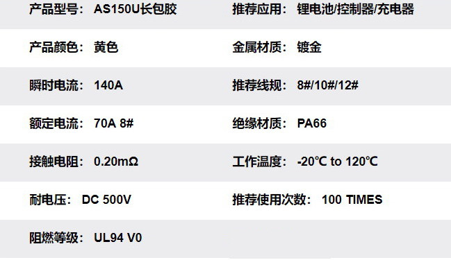 ПараметрыAS150U ROTARY XT90S ANTI -FIRE MOMВыходной порт AS150U батареи Swift может быть преобразован в выход порта XT90S, чтобы предотвратить тип пожара.